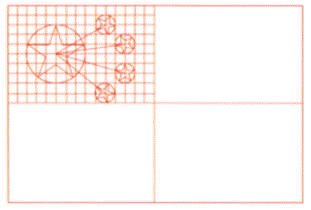 甲、為便於確定五星之位置,先將旗面對分為四個相等的長方形,將左上方之長方形上下劃為十等分,左右劃為十五等分。