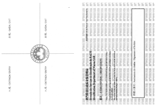 一、如申請人的澳門居民身份證或澳門特別行政區居民身份證明文件上載有多於一個姓名,在旅遊證印有個人資料的封底內頁上,只登載其首個姓名。