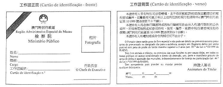 一、核准澳門特別行政區檢察長使用的工作證式樣,上述式樣載入本批示附件。