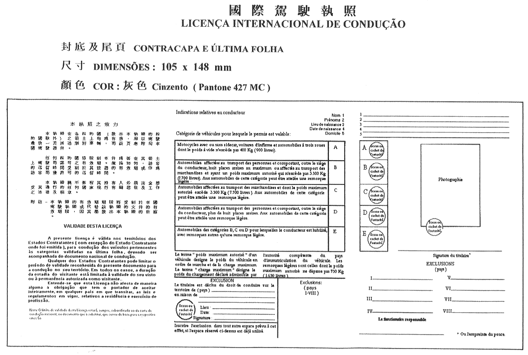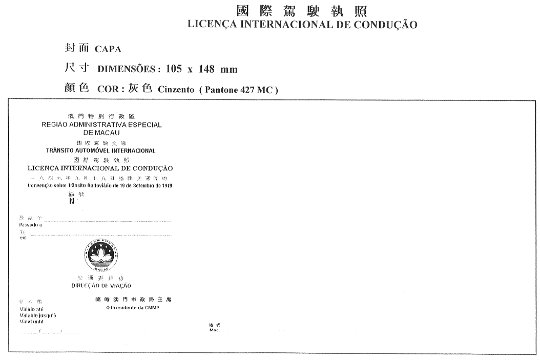 鑑於公佈於二零零零年一月三日第一期《澳門特別行政區公報》第一組的第4/1999號行政長官批示附件所載的國際駕駛執照式樣存有不確之處,根據第3/1999號法律第九條的規定,現更正如下,並重新公佈該批示附件所載的國際駕駛執照式樣: