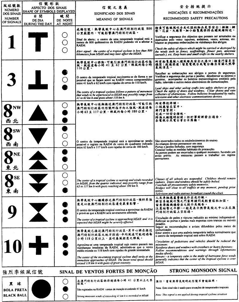 (二)該等風球的號數和形狀,一如本指示以中、葡、英三種文字編制的附錄信號表所載者。