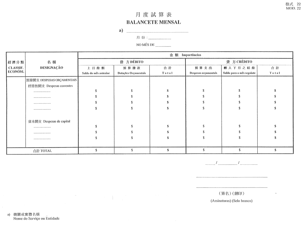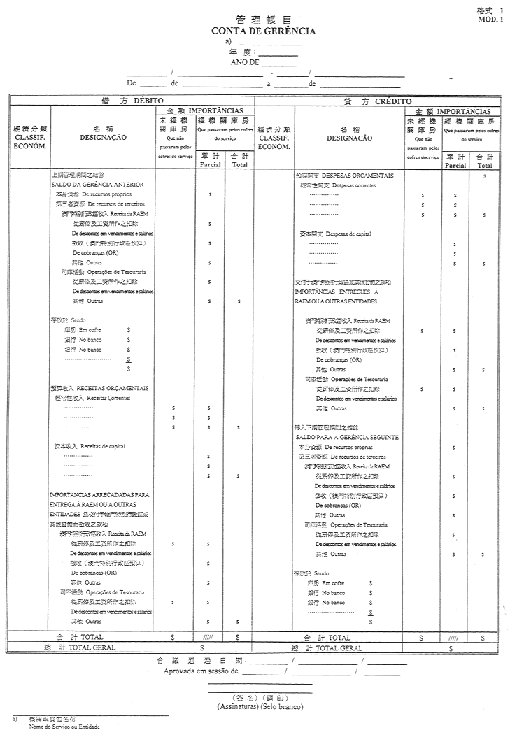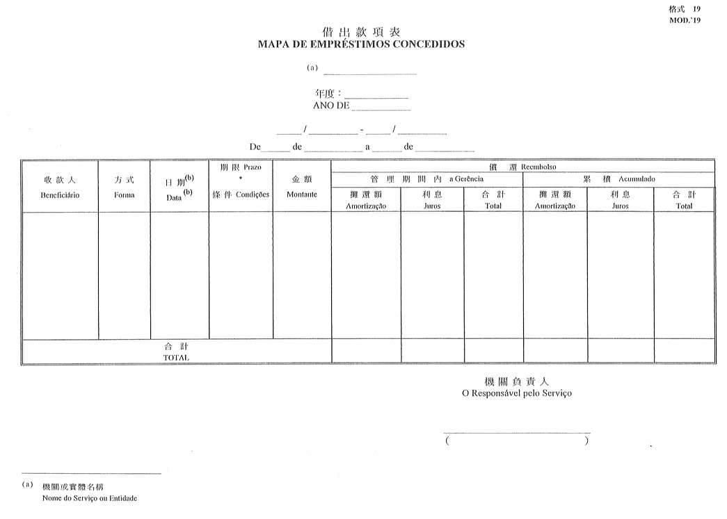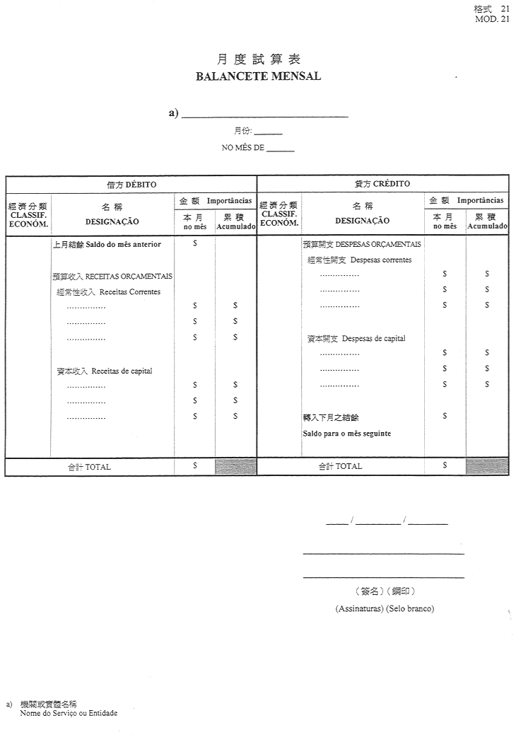 作為澳門特別行政區公庫的銀行之帳目,應按本件附表(格式2)編製。