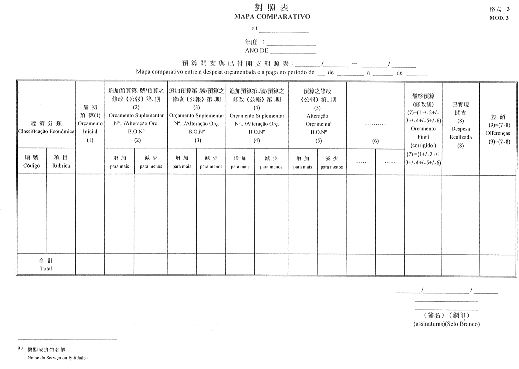 1)預算開支與已付開支對照表-格式3;