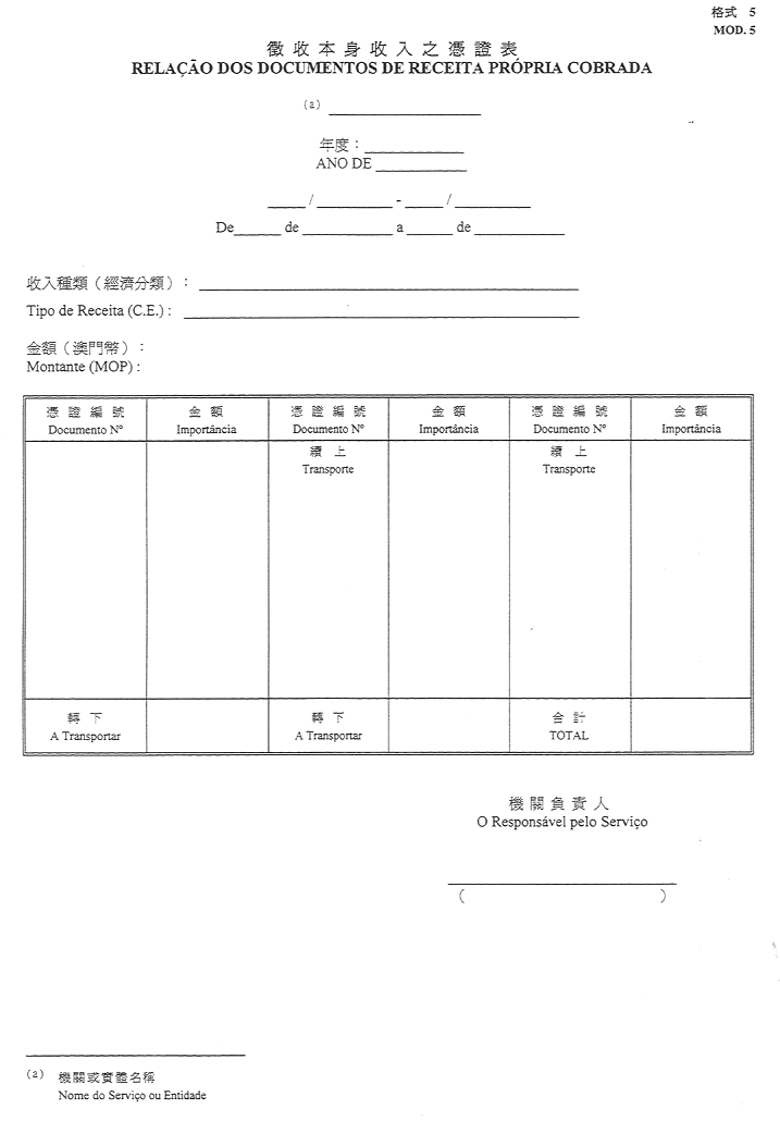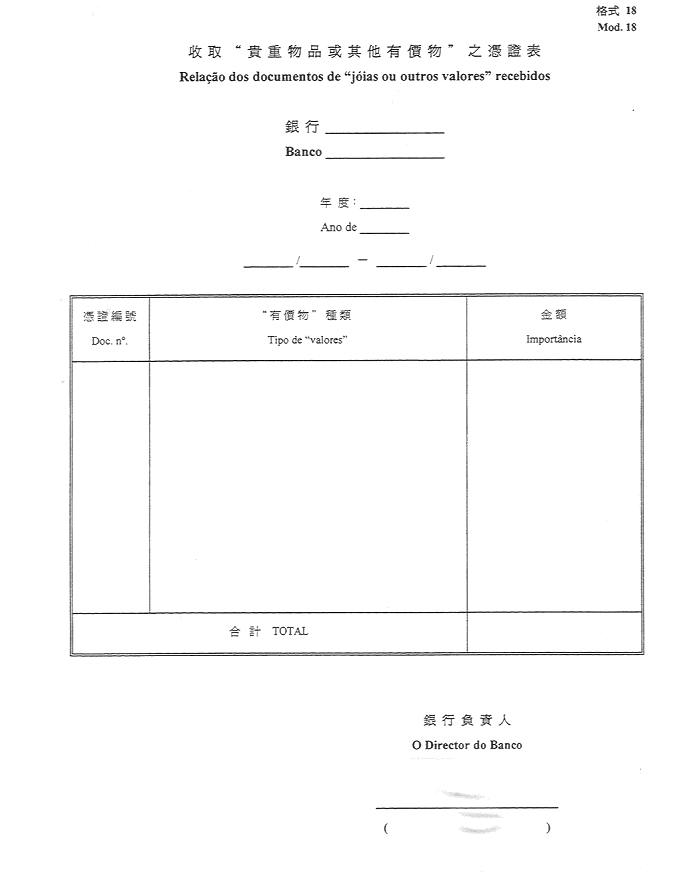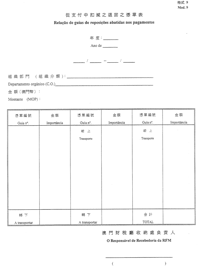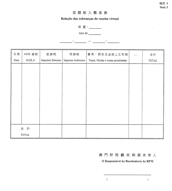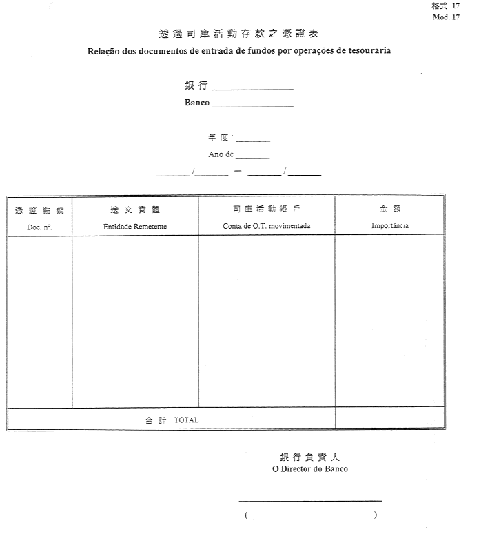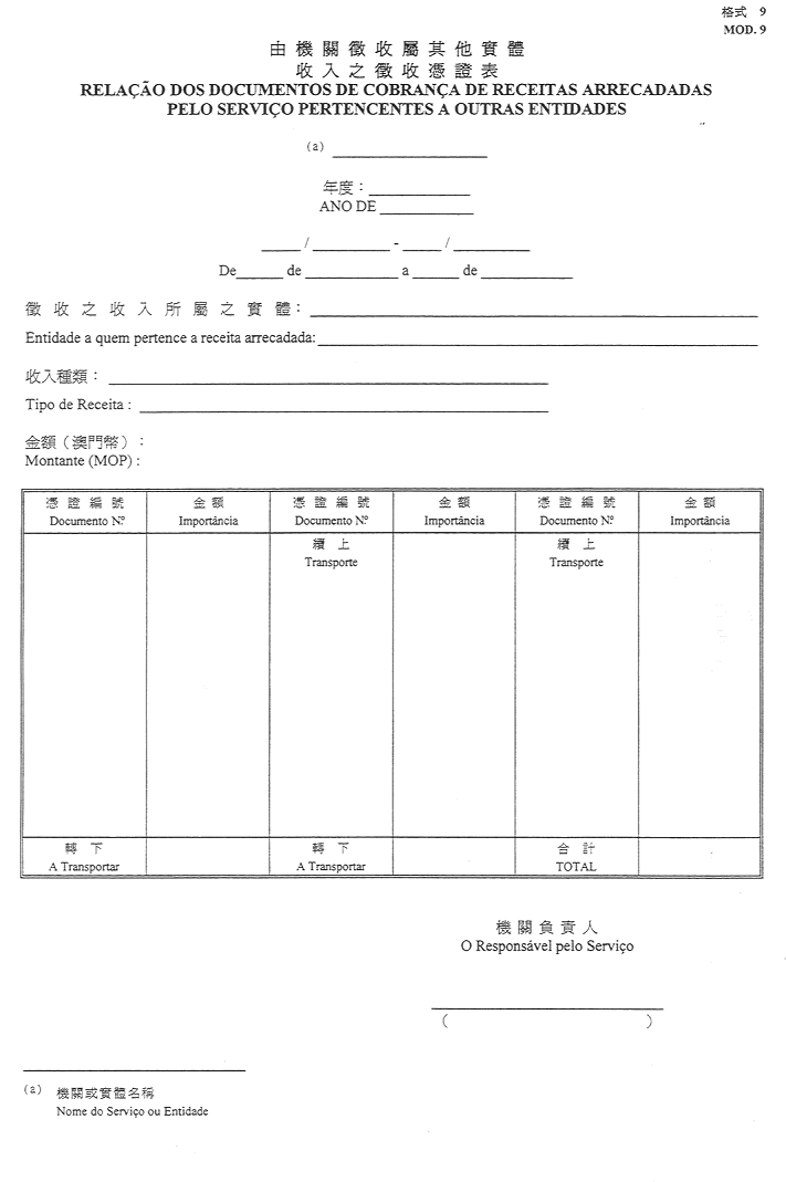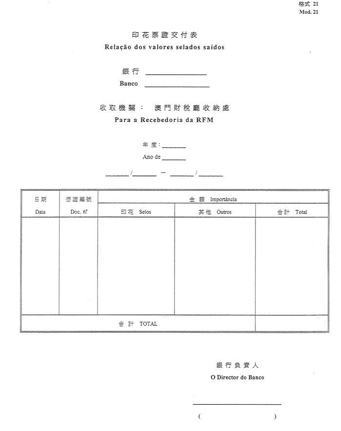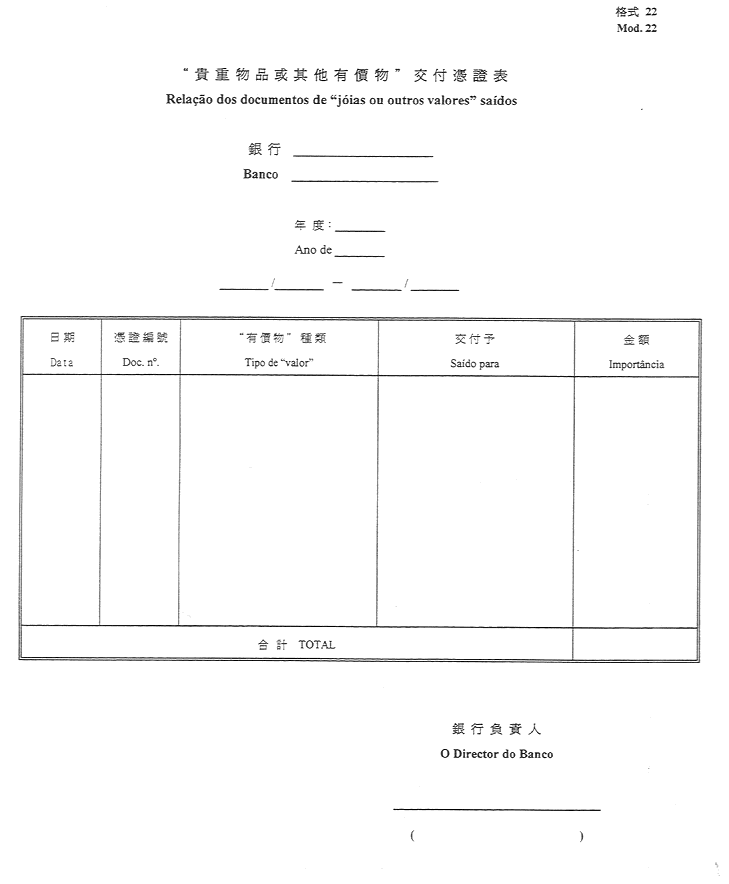 2)公佈於一九五二年十一月八日第45期《政府公報》之《澳門公鈔局收納處部門指示》所指格式。