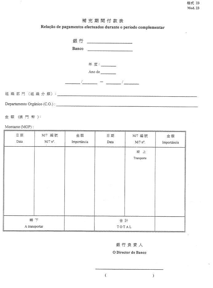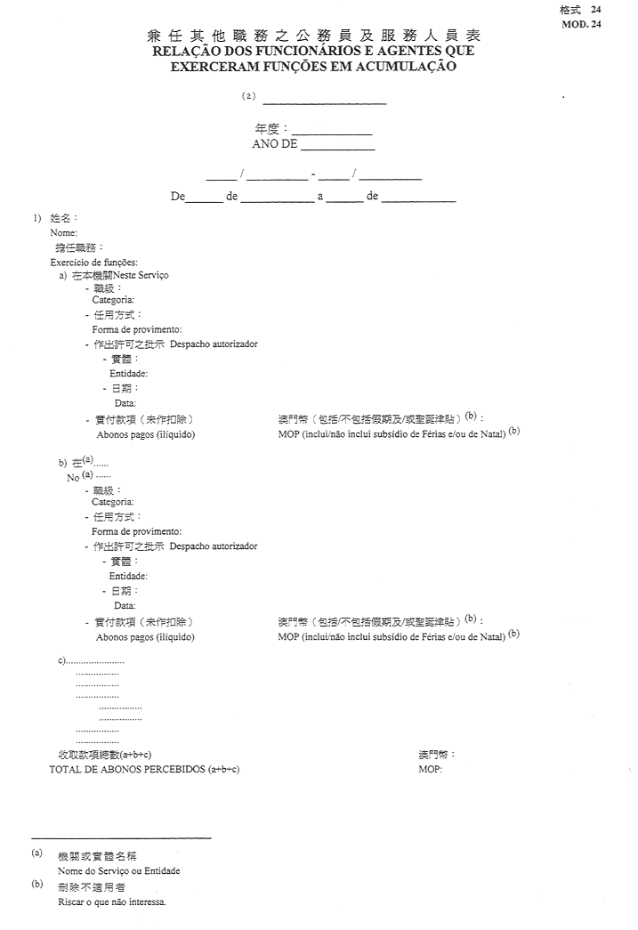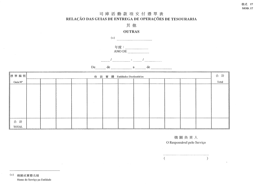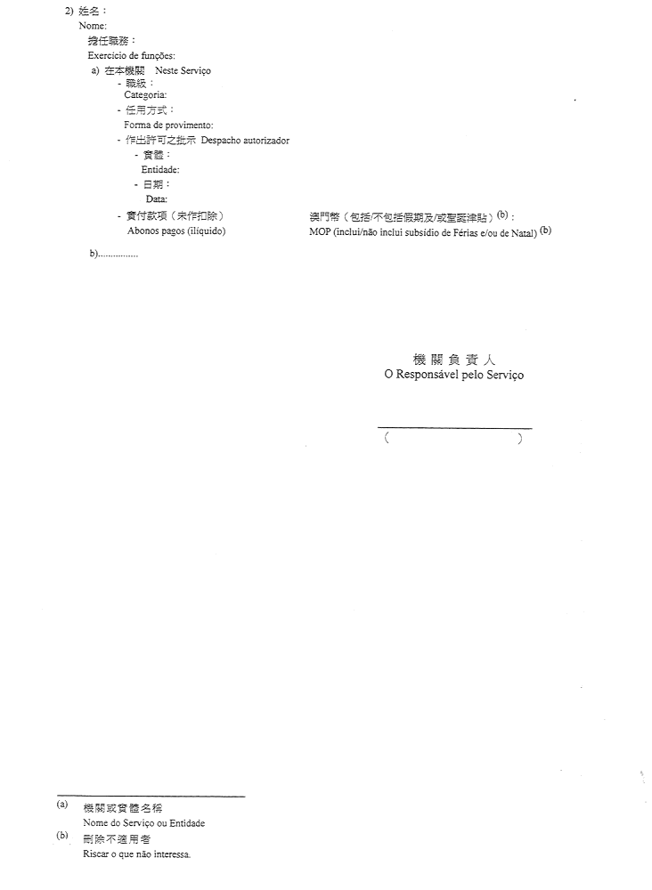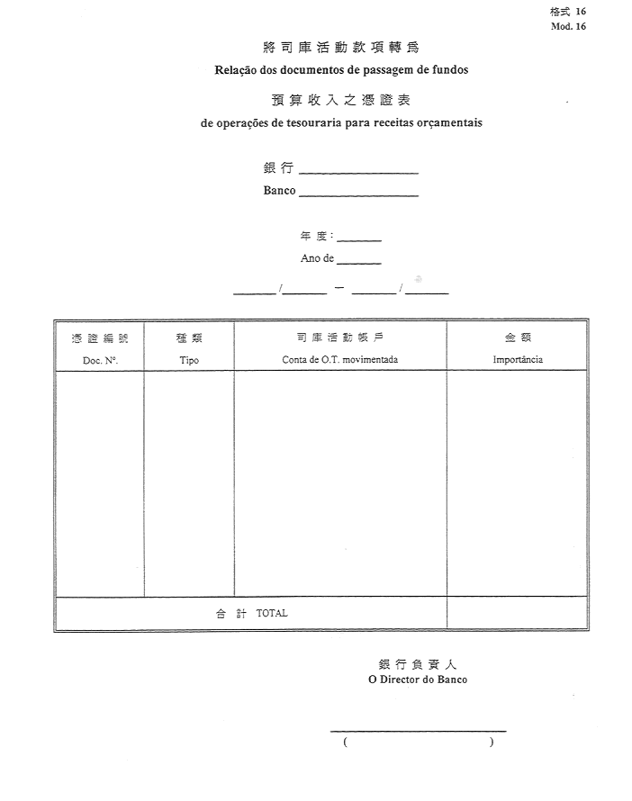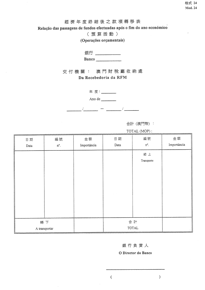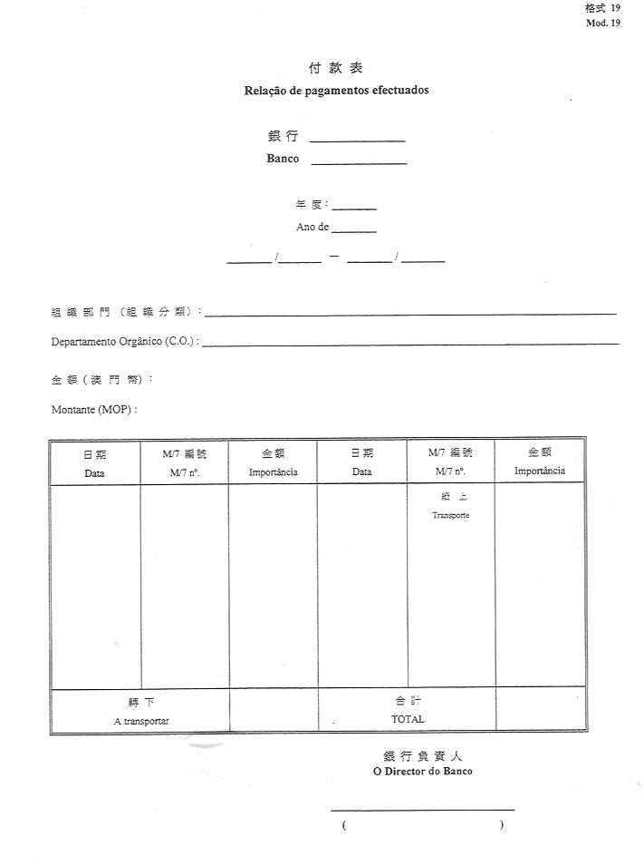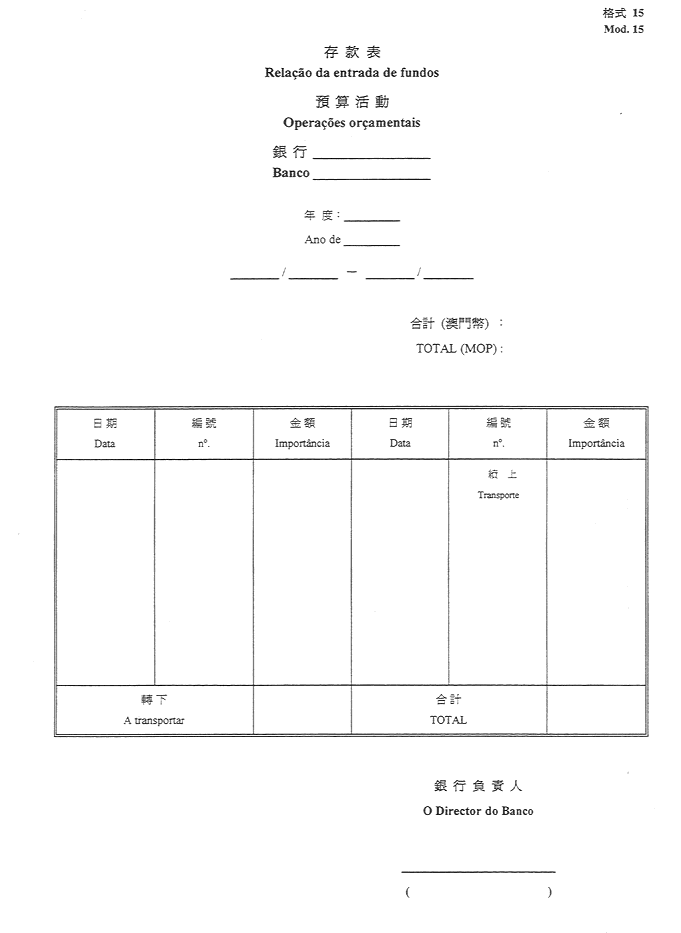 2)公佈於一九五二年十一月八日第45期《政府公報》之《澳門公鈔局收納處部門指示》所指格式。