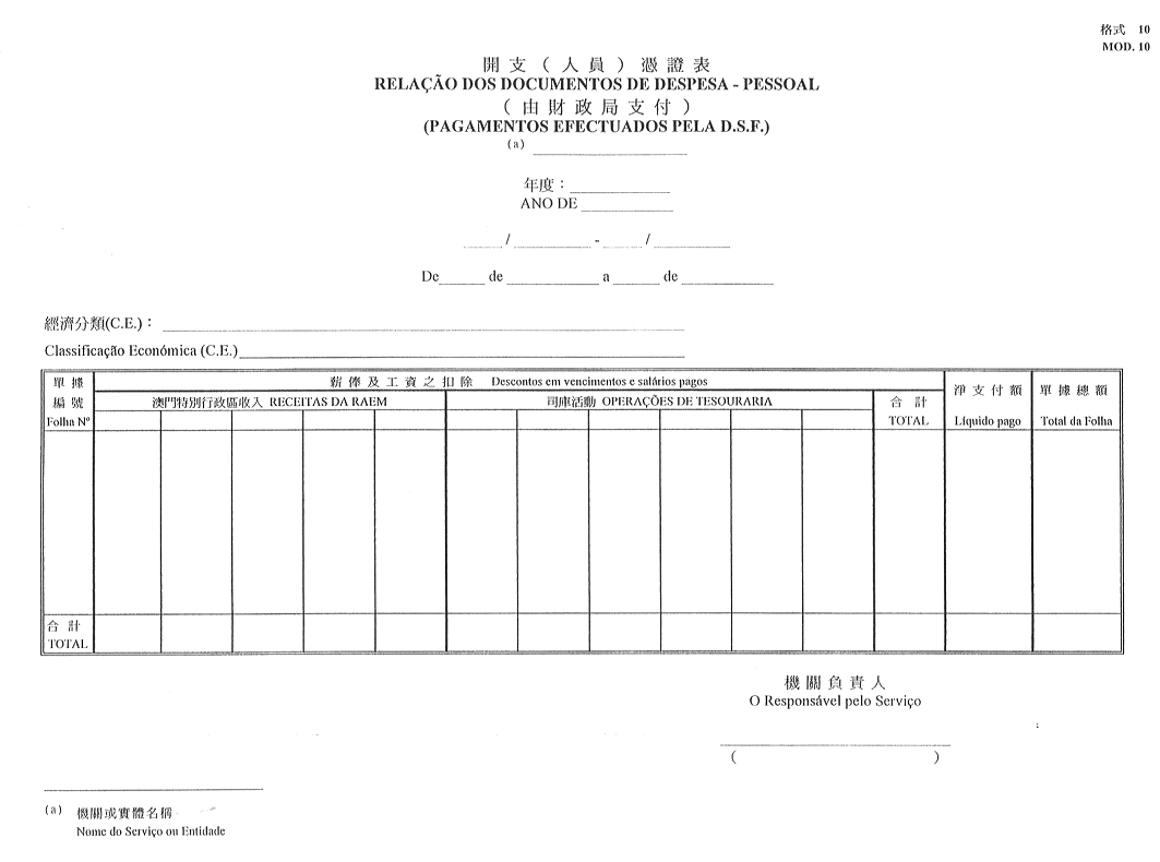 1)直接由財政局支付且在處理時曾作扣除之人員開支之憑證表-格式10;