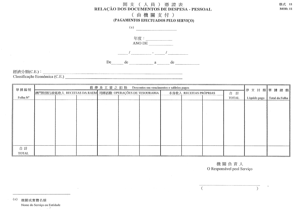 3)直接由財政局支付而不屬上述1)及2)所指開支之憑證表-格式12;