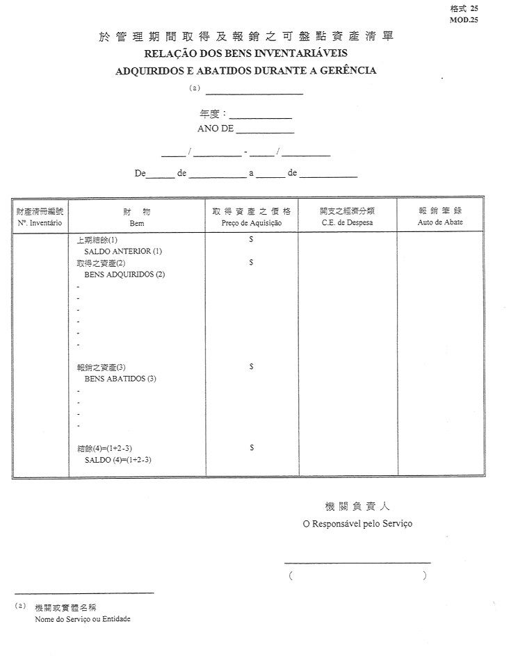 8)於管理期間取得或報銷之可盤點資產之清單-格式25;