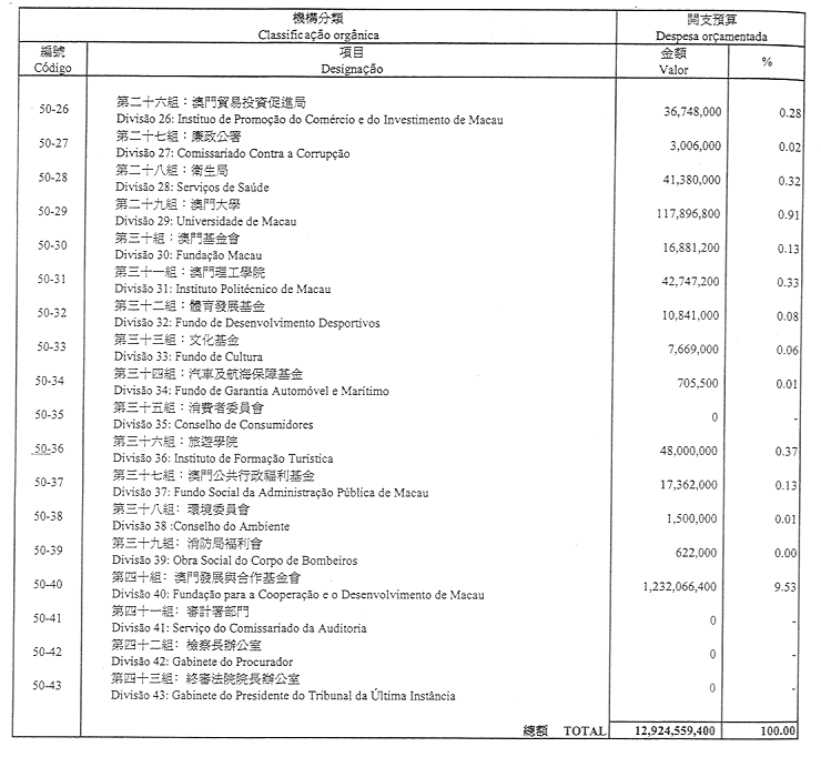 一、二零零零年澳門特別行政區財政預算內未予規範之公共實體,在其財政預算經行政長官核准後,亦獲准運用本身收入以支付法律所許可且登錄在每一本身預算內之開支。