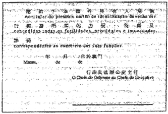 三、證件須由行政長官辦公室主任或其法定代任人簽署,並在簽名及身份證持有人相片其中一下角蓋上行政長官辦公室鋼印,以資認證。