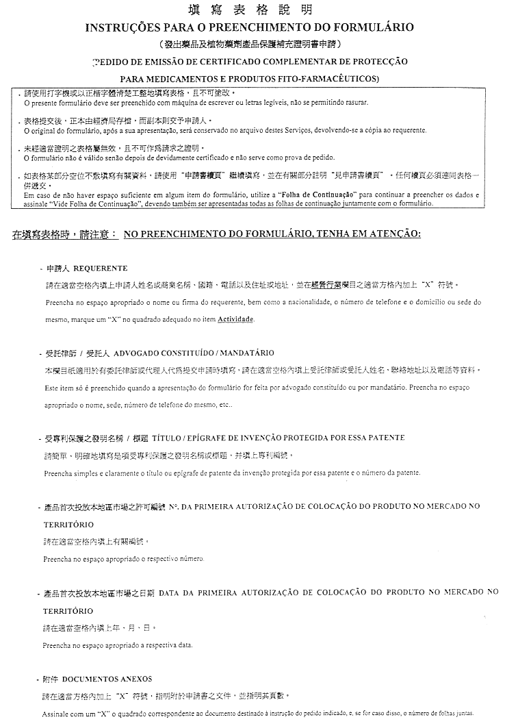 原文為:“…Certificado Complementar de Protecção para Medicamento e Produto Fito-Farmarcêutico…”