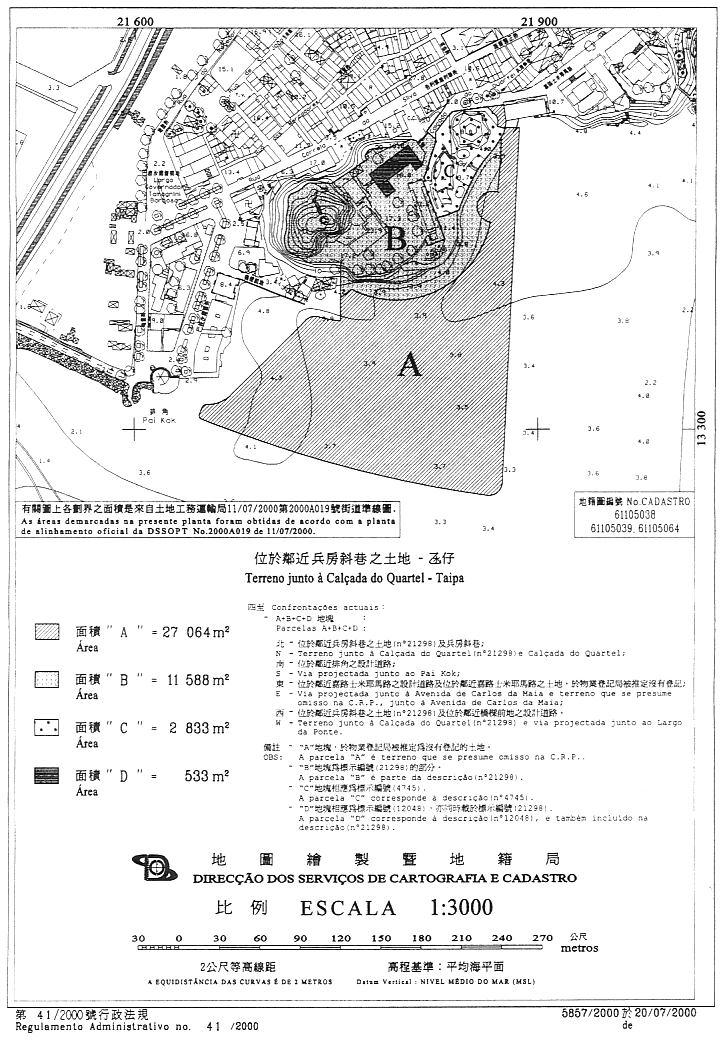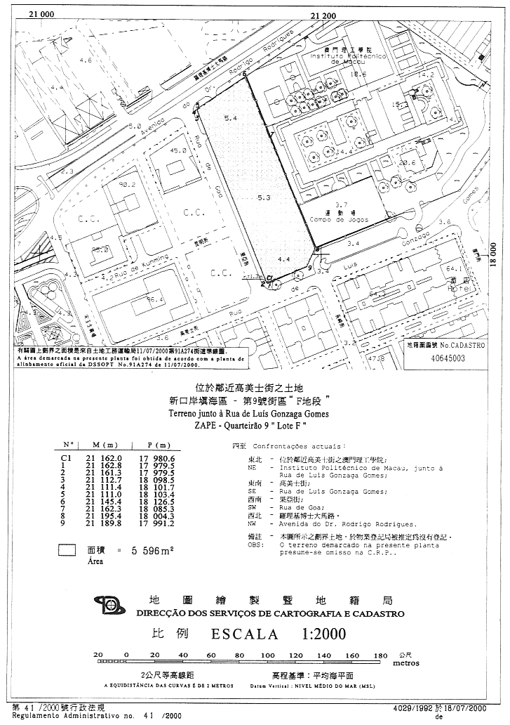 保留兩幅土地,一幅位於澳門半島新口岸填海區(ZAPE)第9號街區,F地段,面積5,596平方米,在物業登記局未有標示,是在地圖繪製暨地籍局於二零零零年七月十八日發出的第4029/1992號地籍圖中劃界的土地,該地籍圖為本法規的組成部分;另一幅位於氹仔兵房斜巷,面積42,018平方米,在物業登記局已有標示,編號為第21298號、第4745號及第12048號,是在地圖繪製暨地籍局於二零零零年七月二十日發出的第5857/2000號地籍圖中以字母“ A”、“ B”、“ C”及“ D”標出的土地,該地籍圖亦為本法規的組成部分。