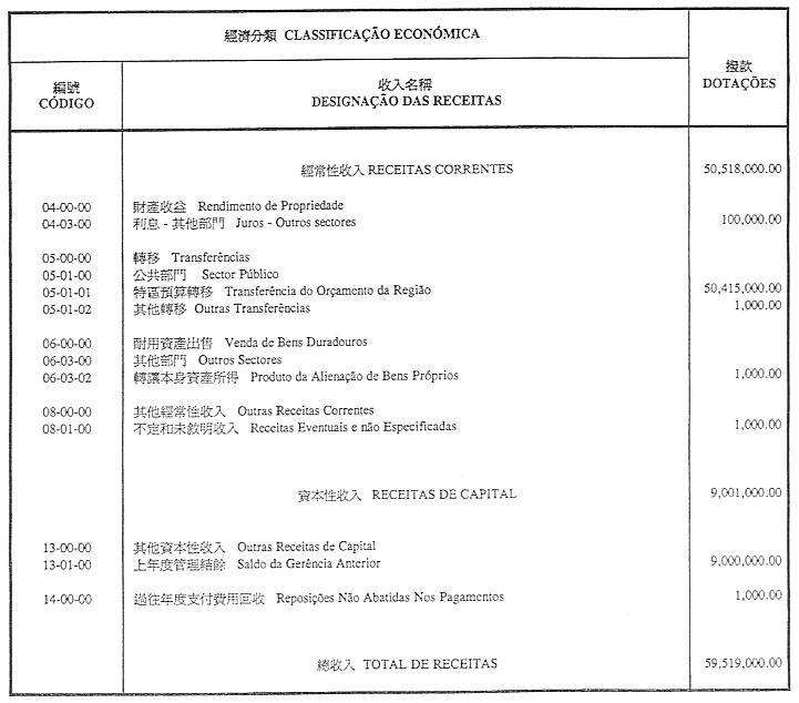 核准廉政公署二零零一年財政年度之本身預算,並於二零零一年一月一日起開始執行,預計收入及開支之金額均為澳門幣59,519,000.00(伍仟玖佰伍拾壹萬玖仟圓整),該預算為本批示之組成部份。