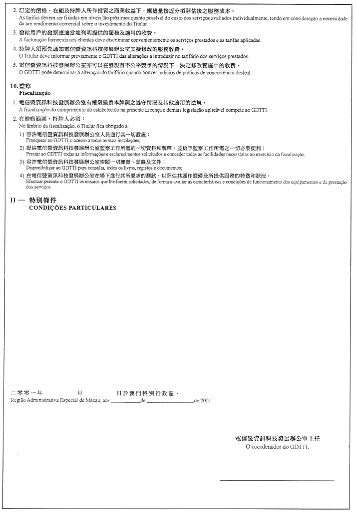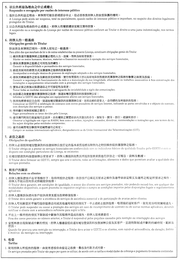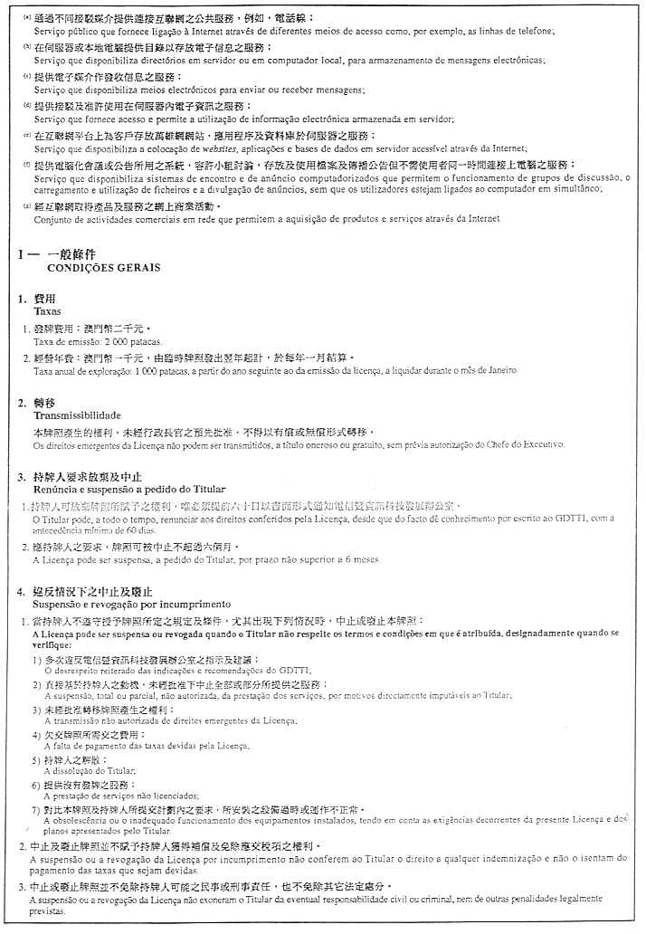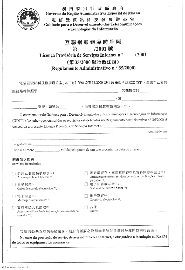 核准附於本行政命令並成為其組成部分之互聯網服務臨時牌照式樣。
