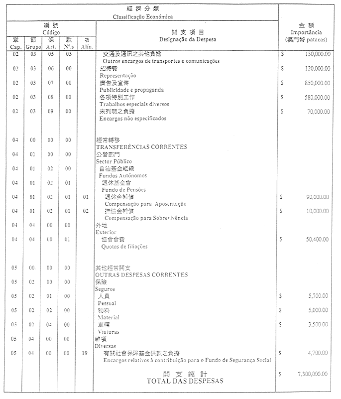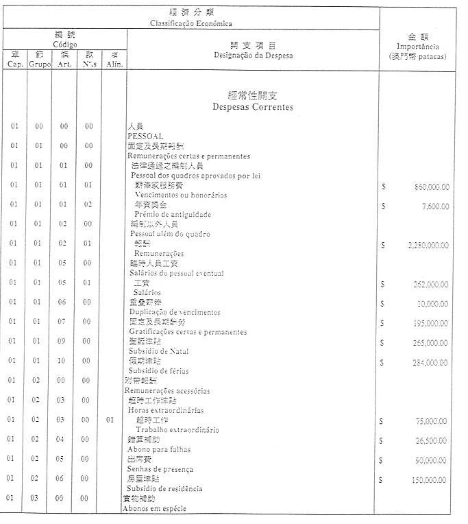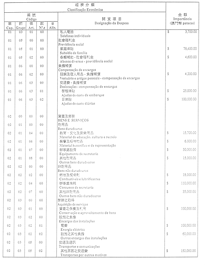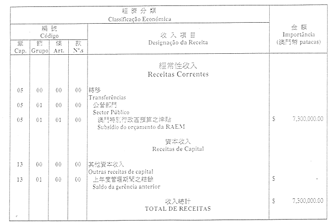 - 05-01-02-00................... 澳門特別行政區財政預算之撥款 $2,000,000.00