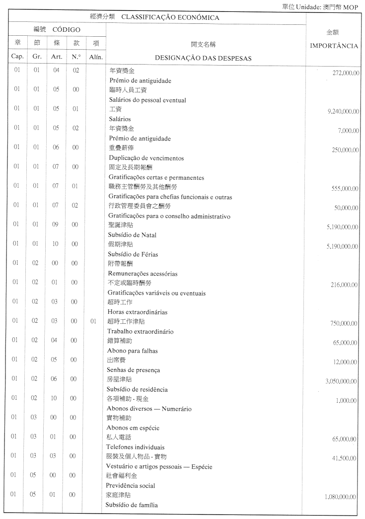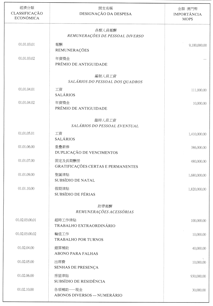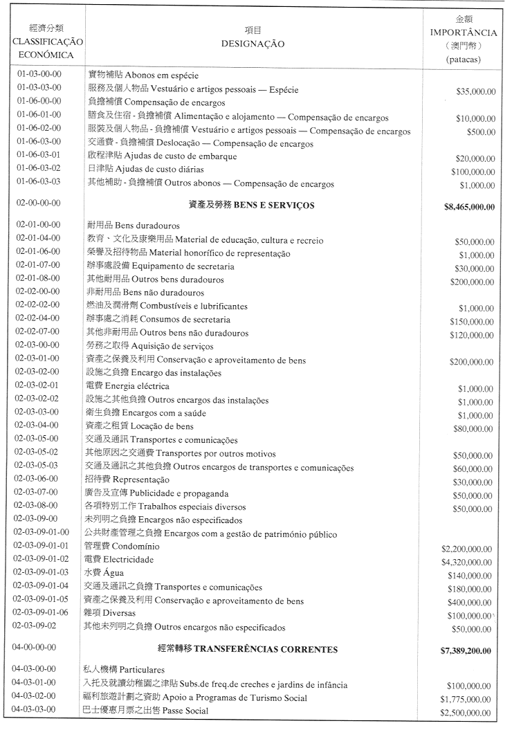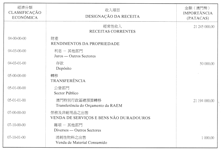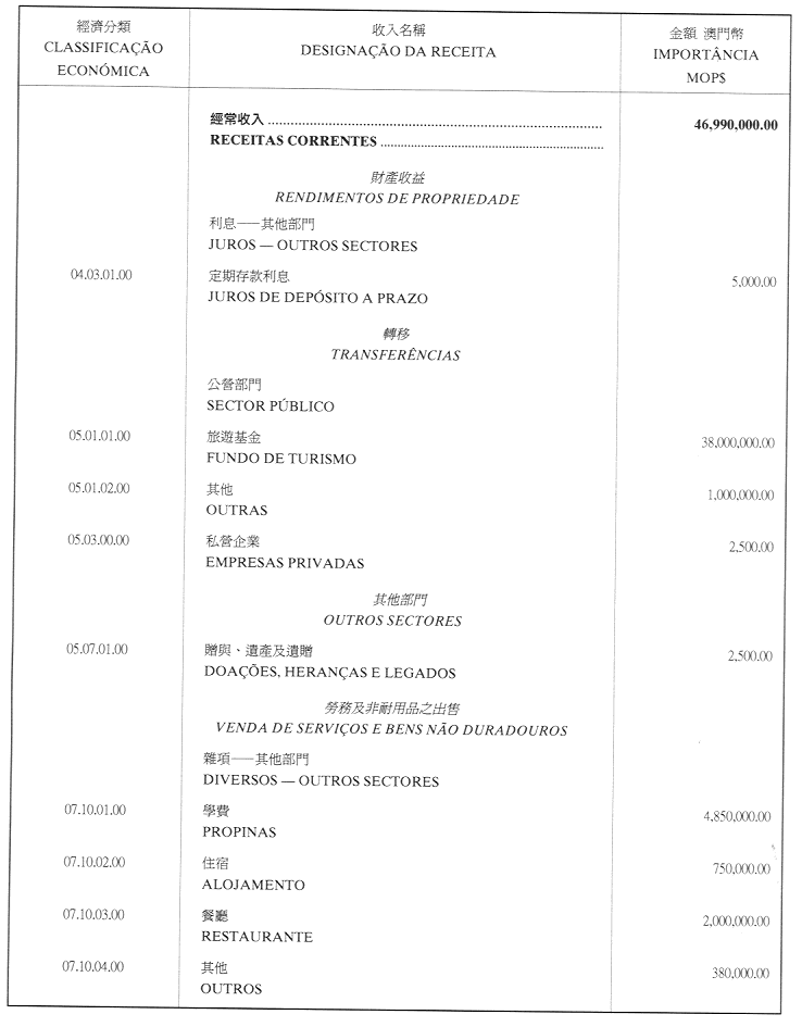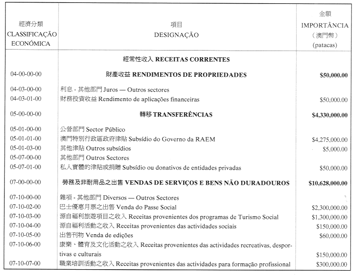 澳門公共行政福利基金2001年財政年度本身預算