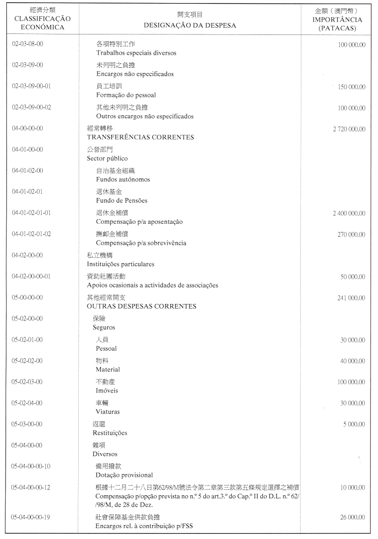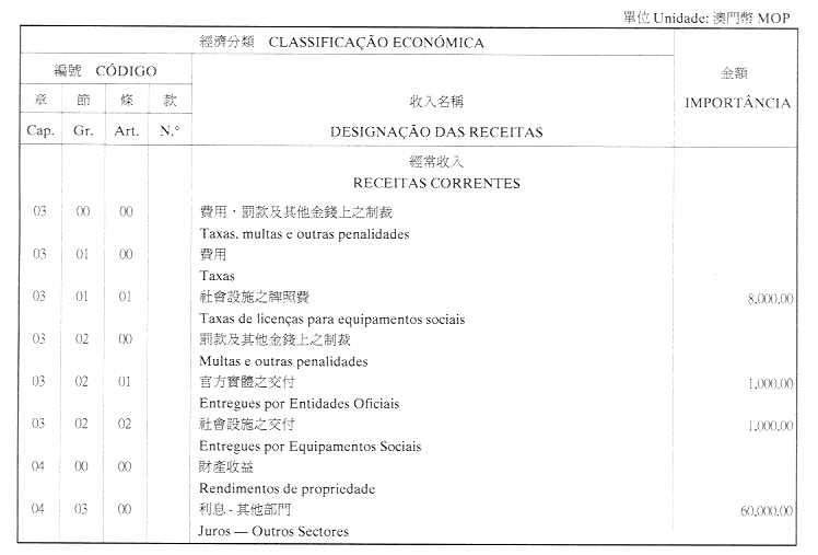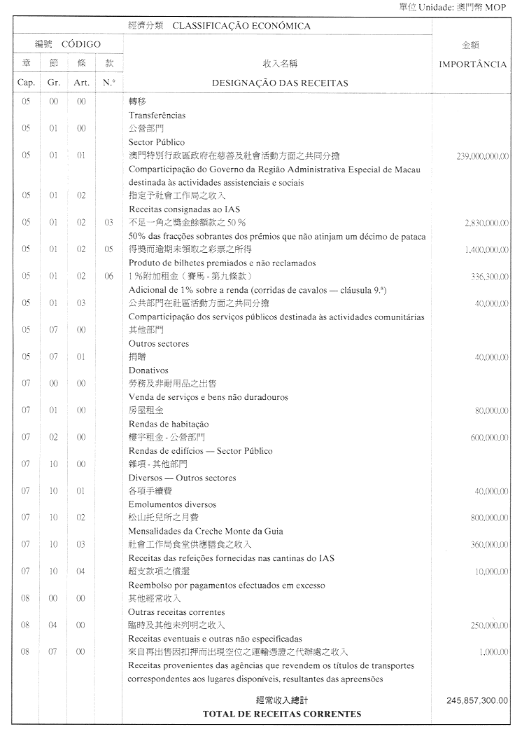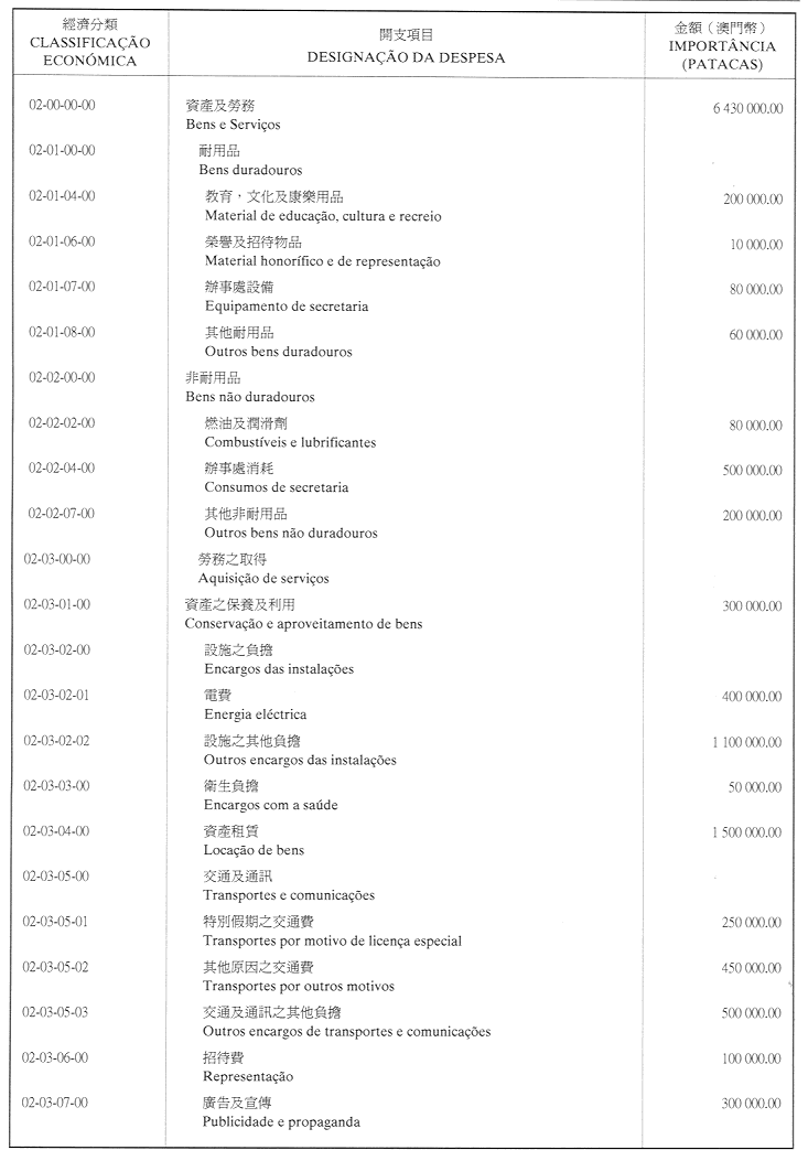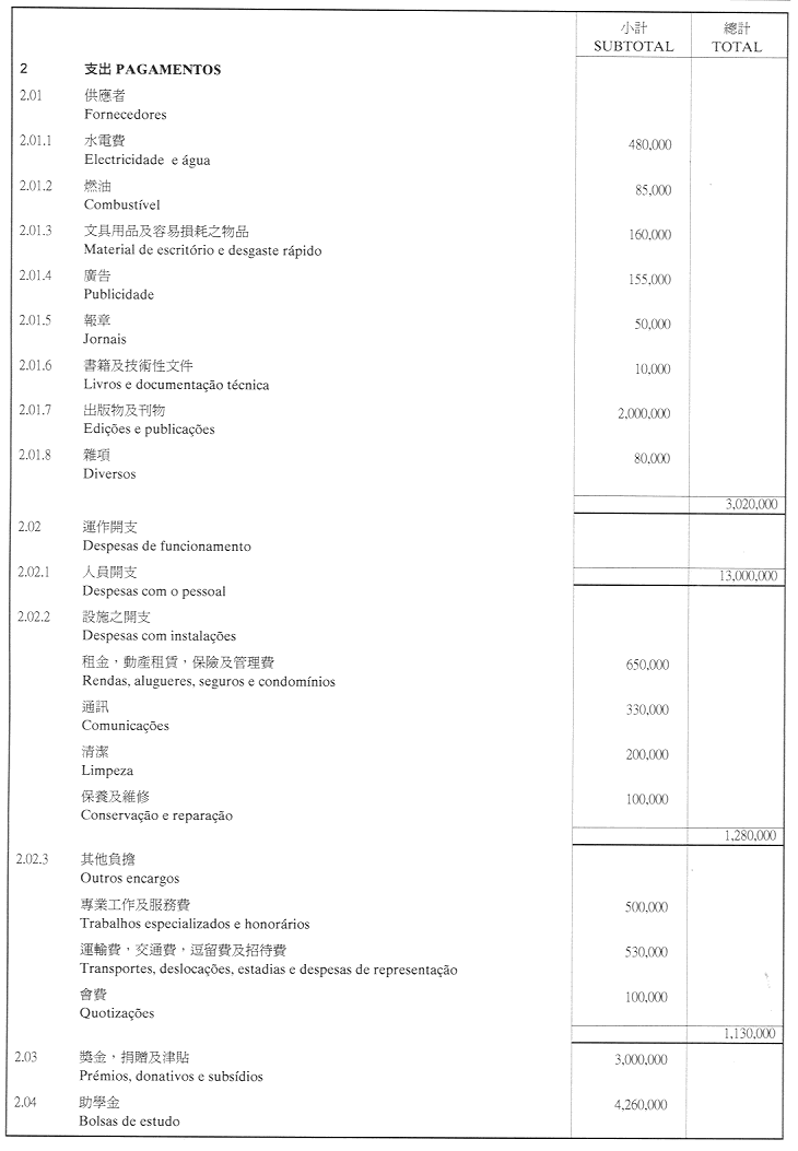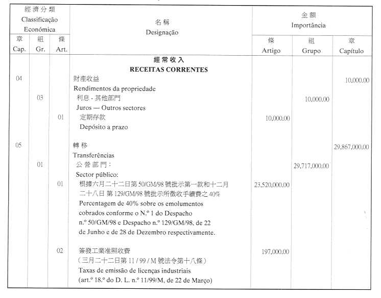 澳門公共行政福利基金2001年財政年度本身預算