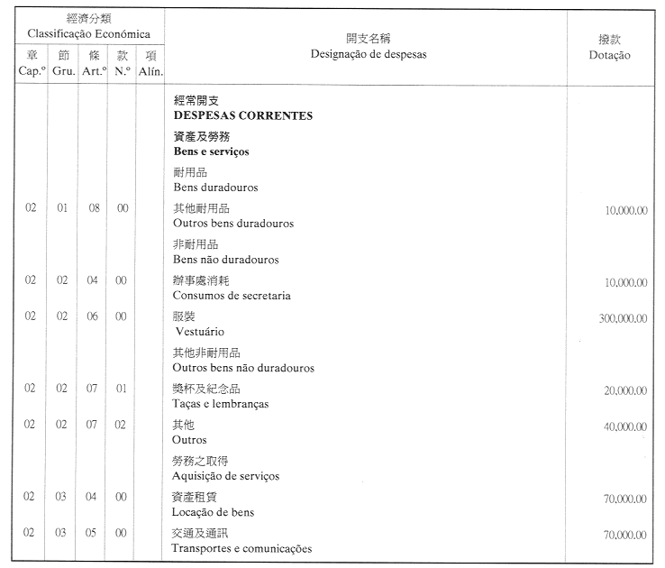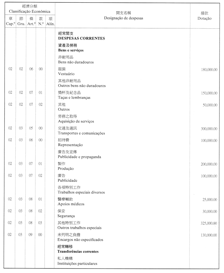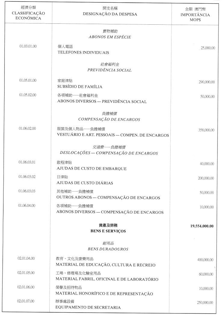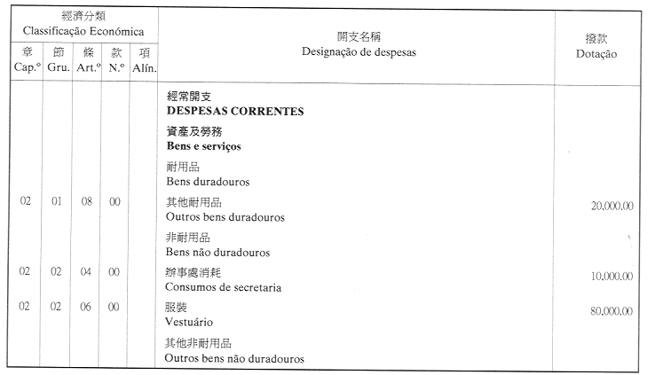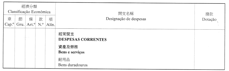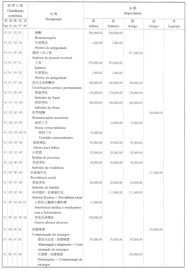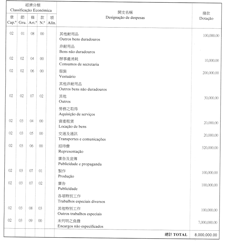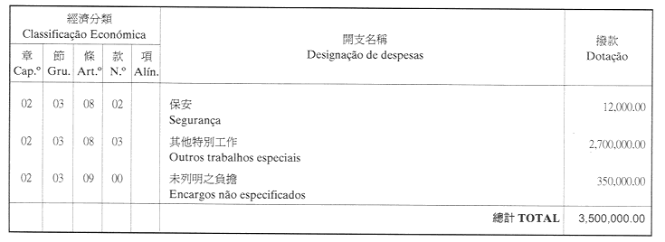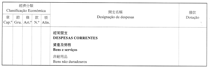 經濟年度:2001 開支預算