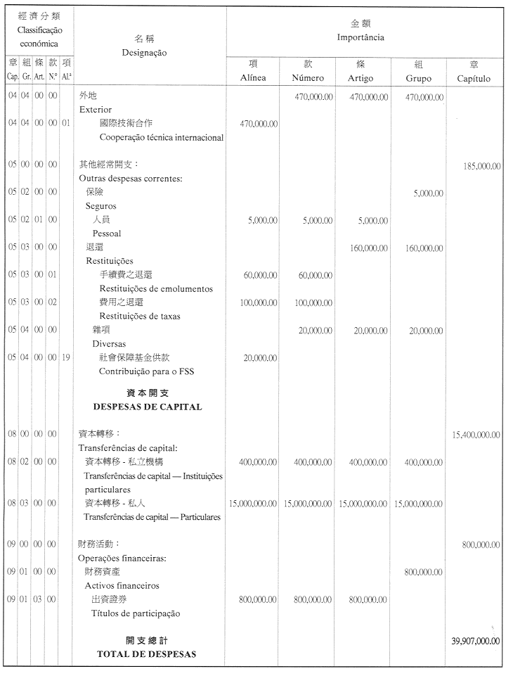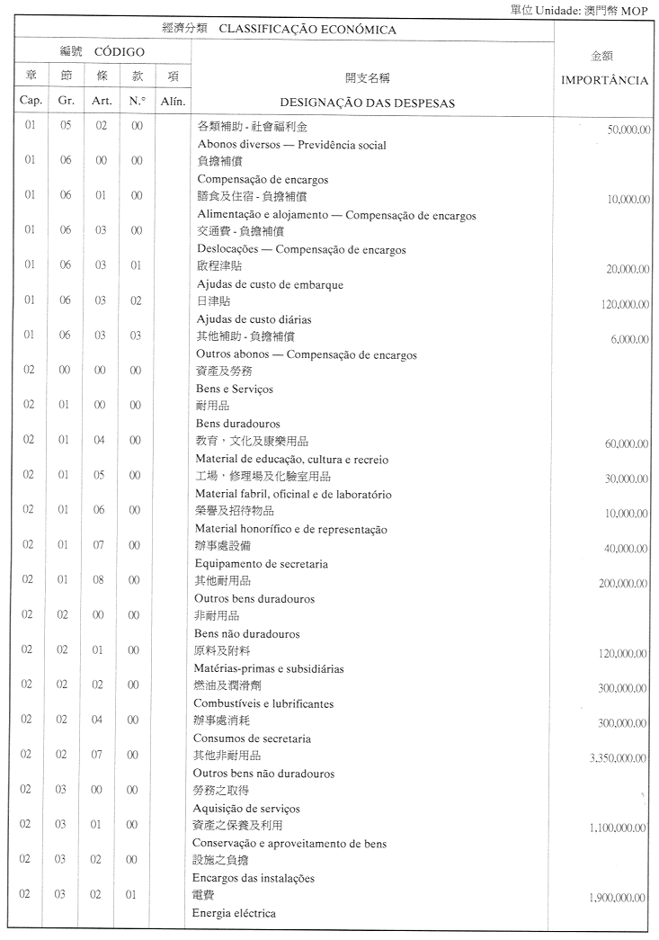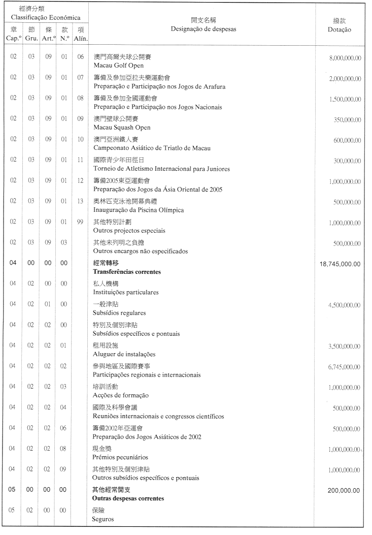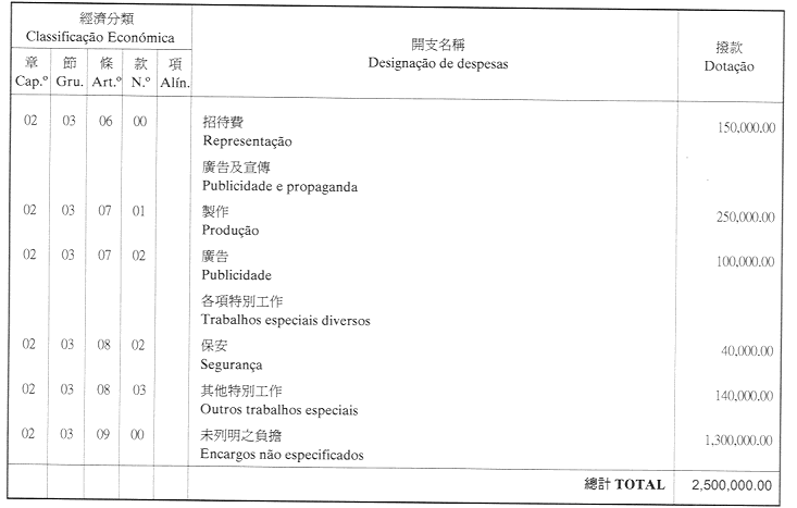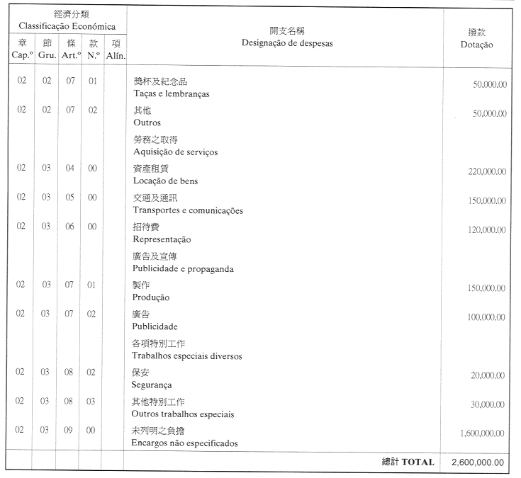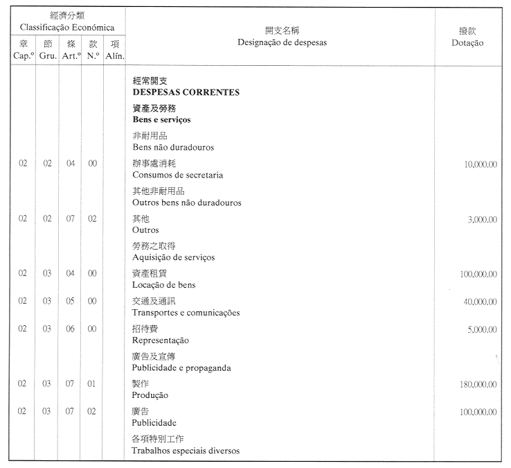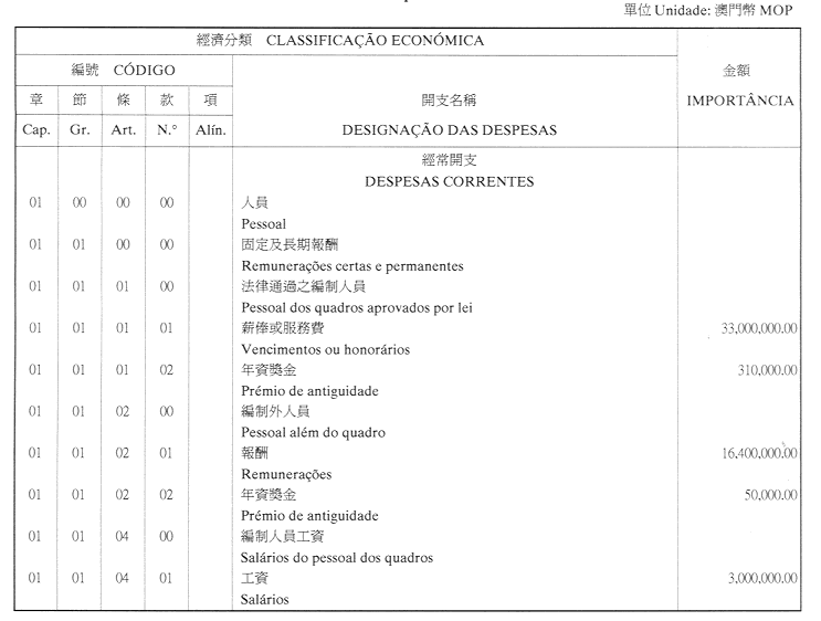 經濟年度:2001 開支預算