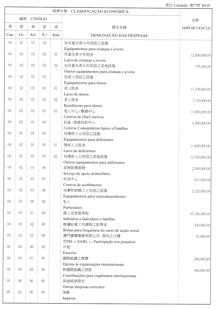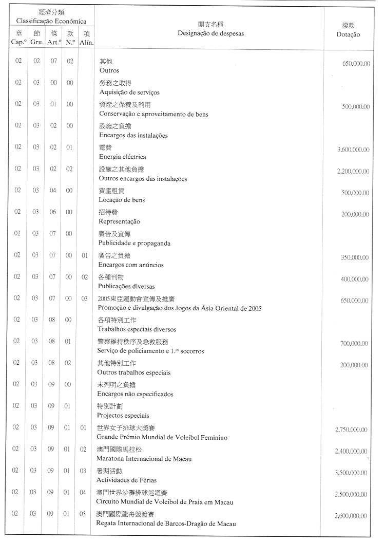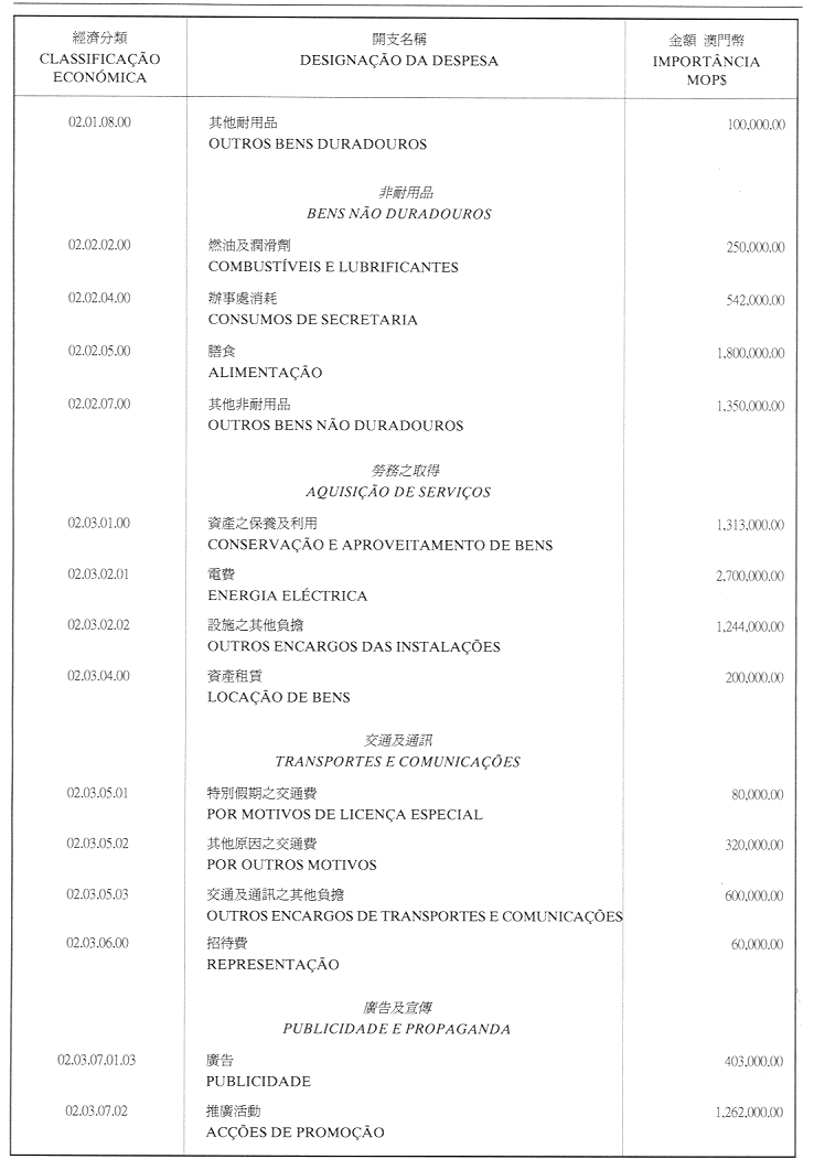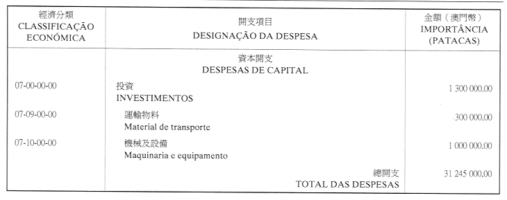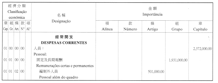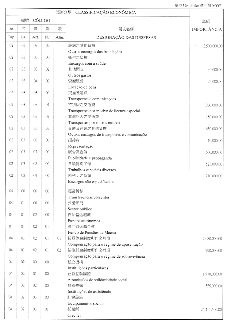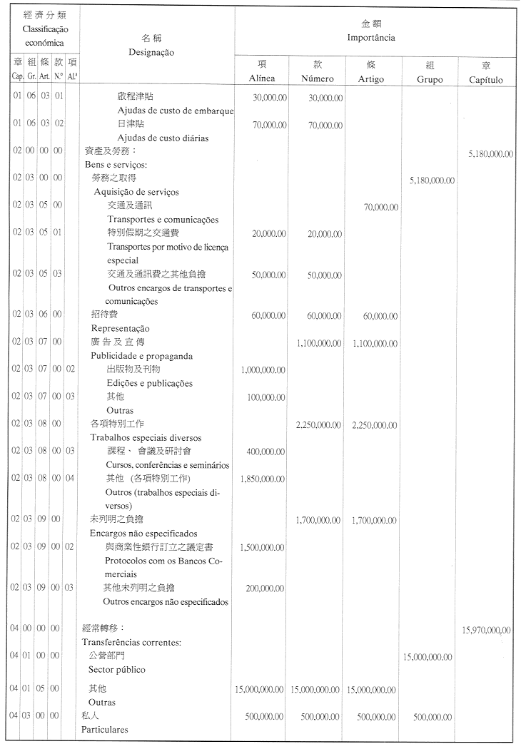 經濟年度:2001 開支預算