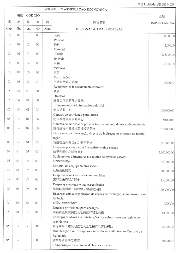 核准社會工作局二零零一年財政年度之本身預算,並於二零零一年一月一日起開始執行,預計收入及開支之金額均為澳門幣250,867,300.00(貳億伍仟零捌拾陸萬柒仟叁佰元正),該預算為本批示之組成部分。