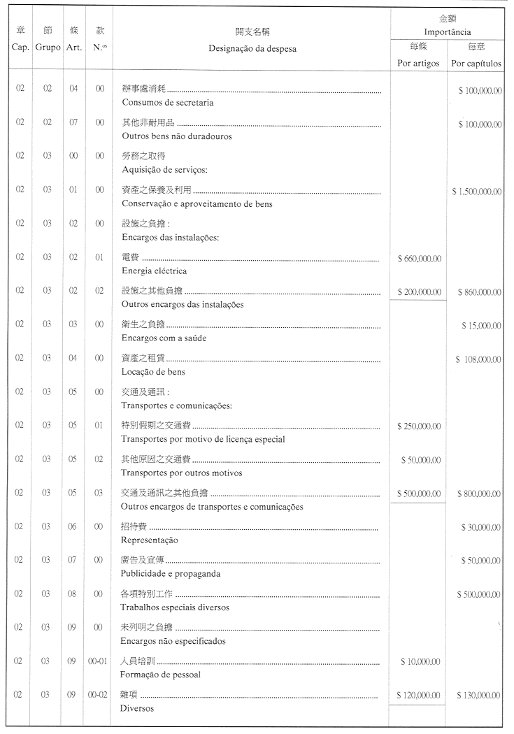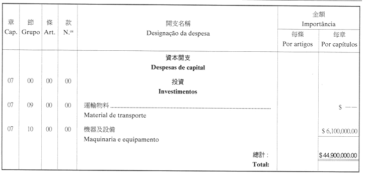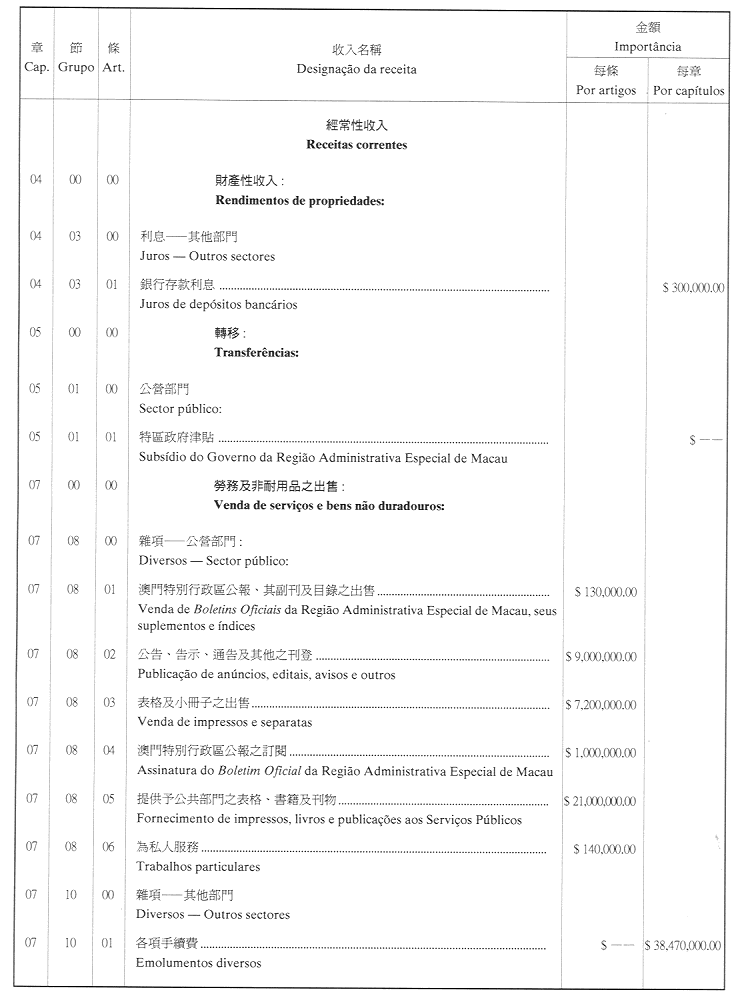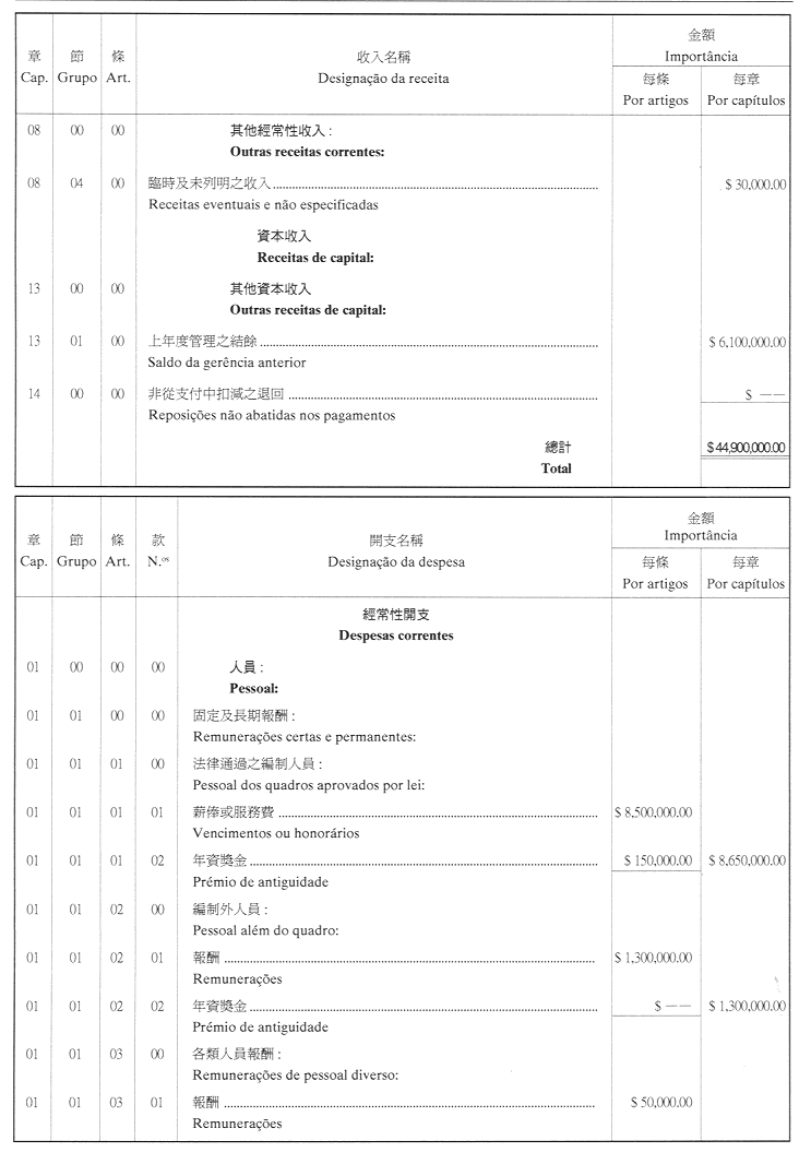 核准印務局二零零一年財政年度之本身預算,並於二零零一年一月一日起開始執行,預計收入及開支之金額均為澳門幣44,900,000.00(肆仟肆佰玖拾萬圓正),該預算為本批示之組成部分。