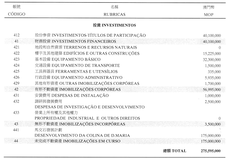 二零零一年投資預算