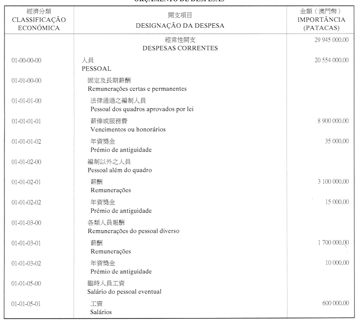 澳門,二零零一年一月三十日——管理委員會 ——主席:吳志良,委員:白麗嫻