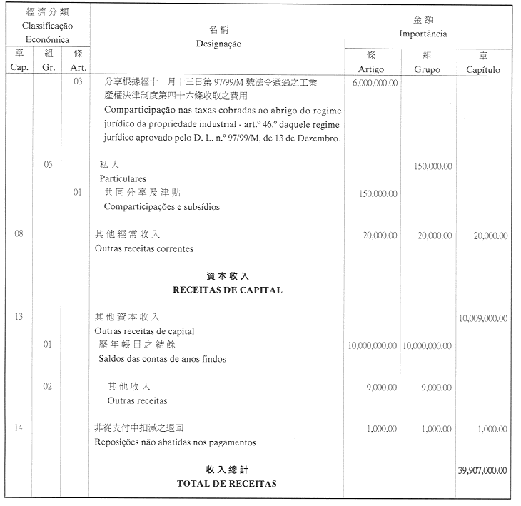 核准工商業發展基金二零零一年財政年度之本身預算,並於二零零一年一月一日起開始執行,預計收入及開支之金額均為澳門幣39,907,000.00(叁仟玖佰玖拾萬零柒仟元整),該預算為本批示之組成部分。