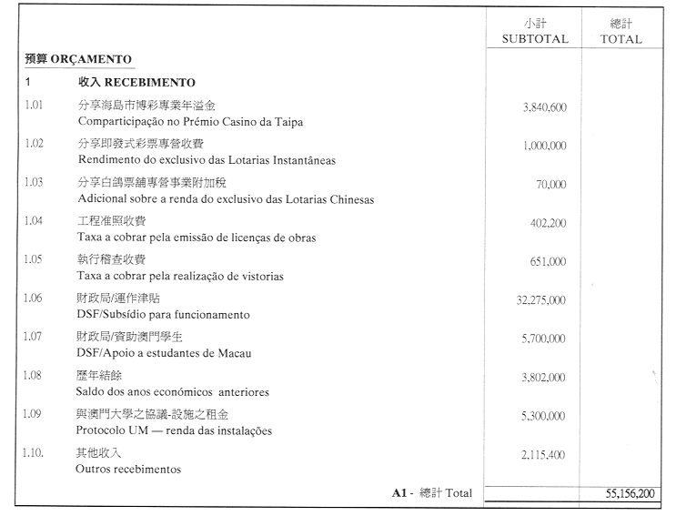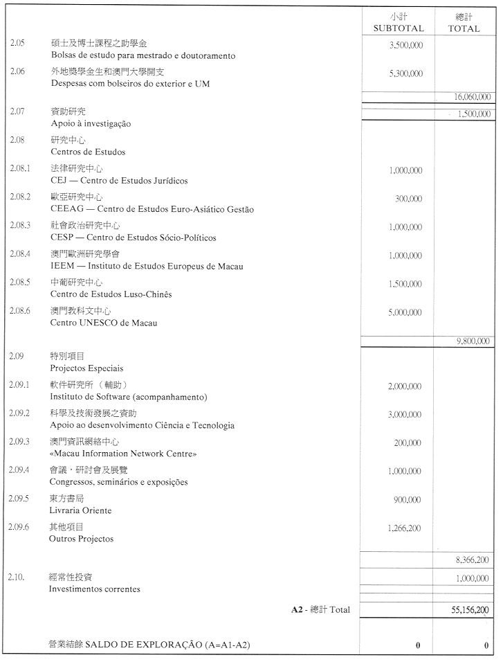 核准澳門基金會二零零一年財政年度之本身預算,並於二零零一年一月一日起開始執行,預計收入及開支之金額均為澳門幣55,156,200.00(伍千伍百壹拾伍萬陸千貳百元整),該預算為本批示之組成部份。