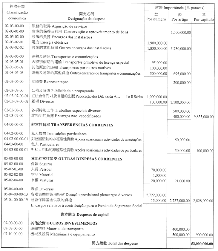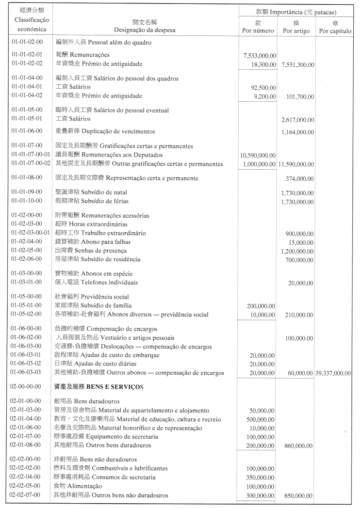 根據十二月四日第11/2000號法律第三十八條第一款規定,立法會議決通過其二零零一年本身預算。