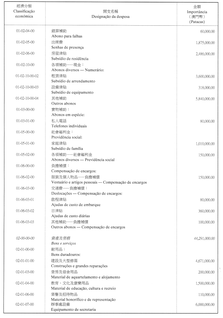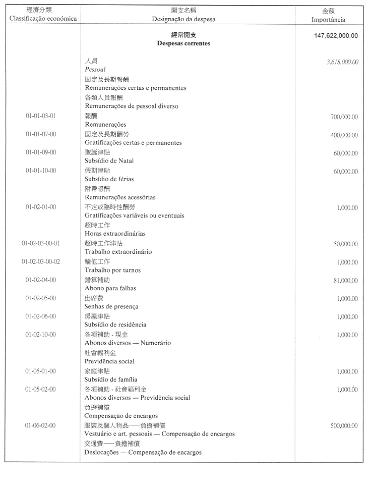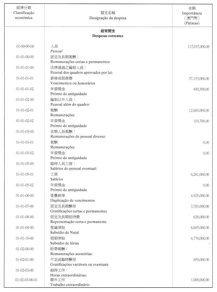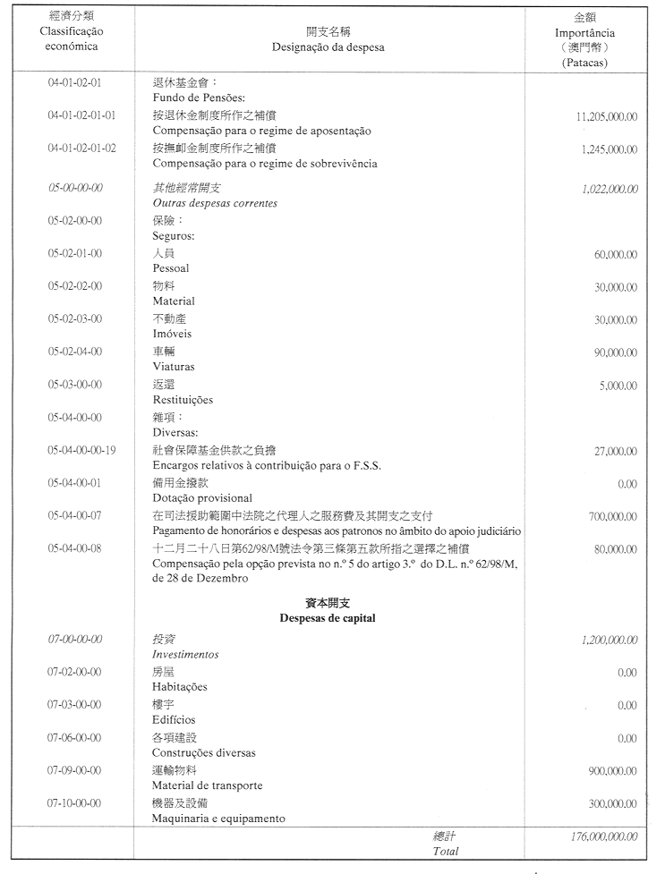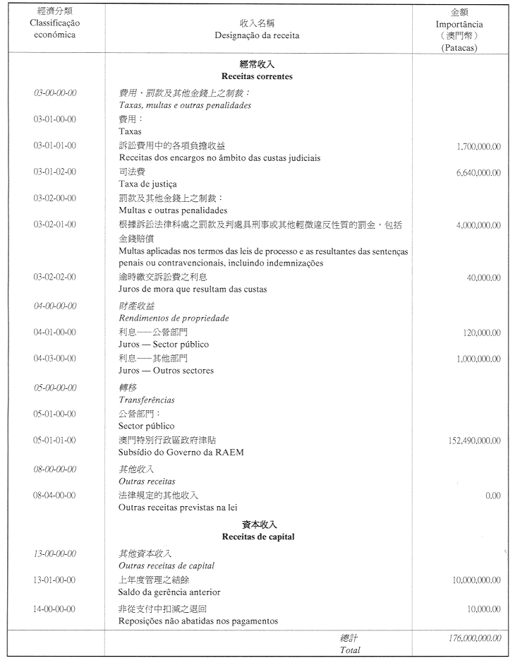核准終審法院院長辦公室二零零一年財政年度之本身預算,並於二零零一年一月一日起開始執行,預計收入及開支之金額均為澳門幣176,000,000.00 (壹億柒仟陸佰萬圓整),該預算為本批示之組成部分。