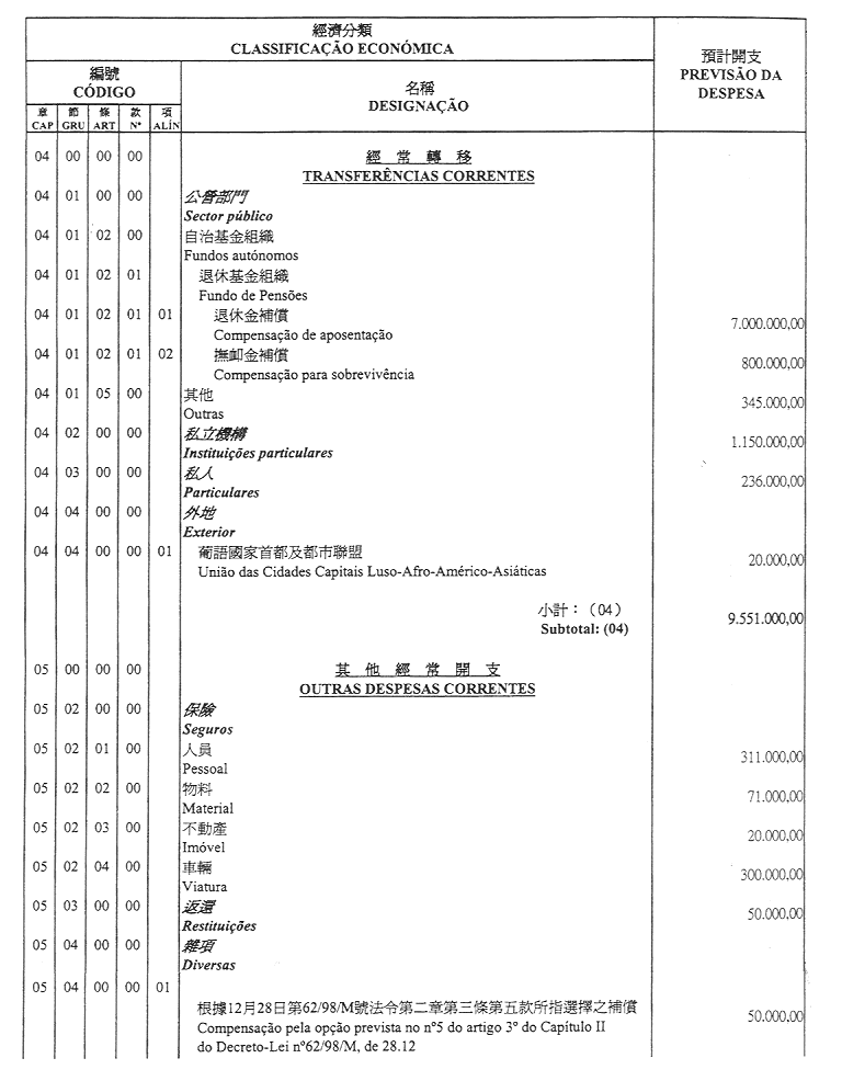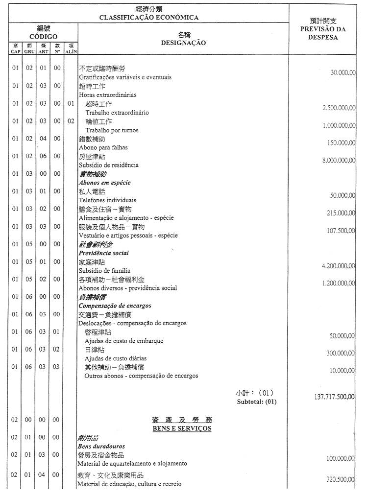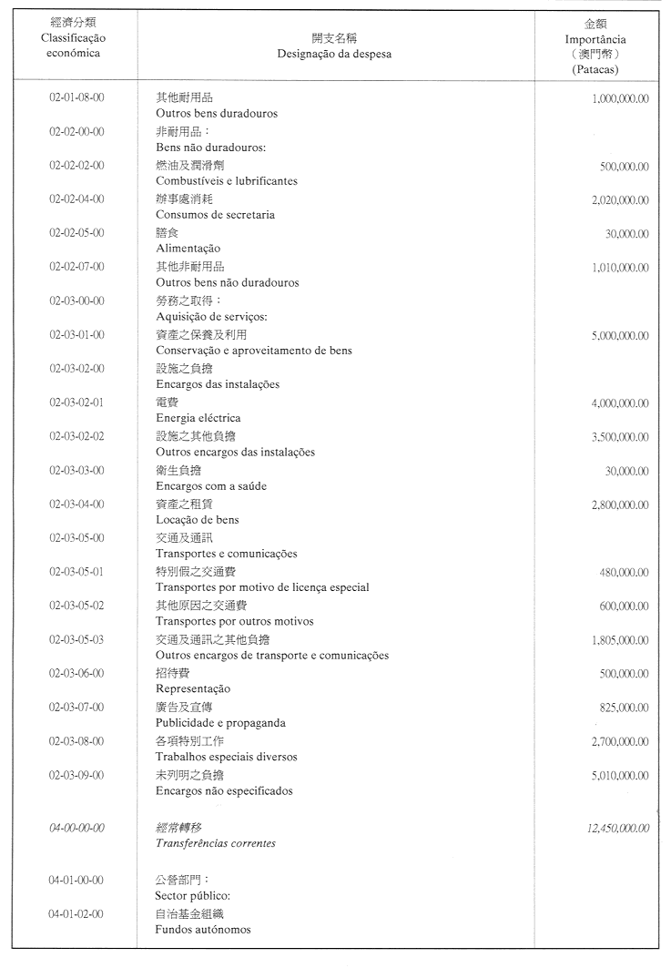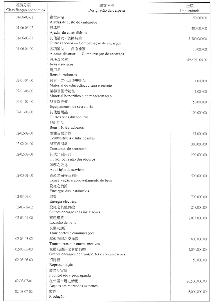 核准終審法院院長辦公室二零零一年財政年度之本身預算,並於二零零一年一月一日起開始執行,預計收入及開支之金額均為澳門幣176,000,000.00 (壹億柒仟陸佰萬圓整),該預算為本批示之組成部分。