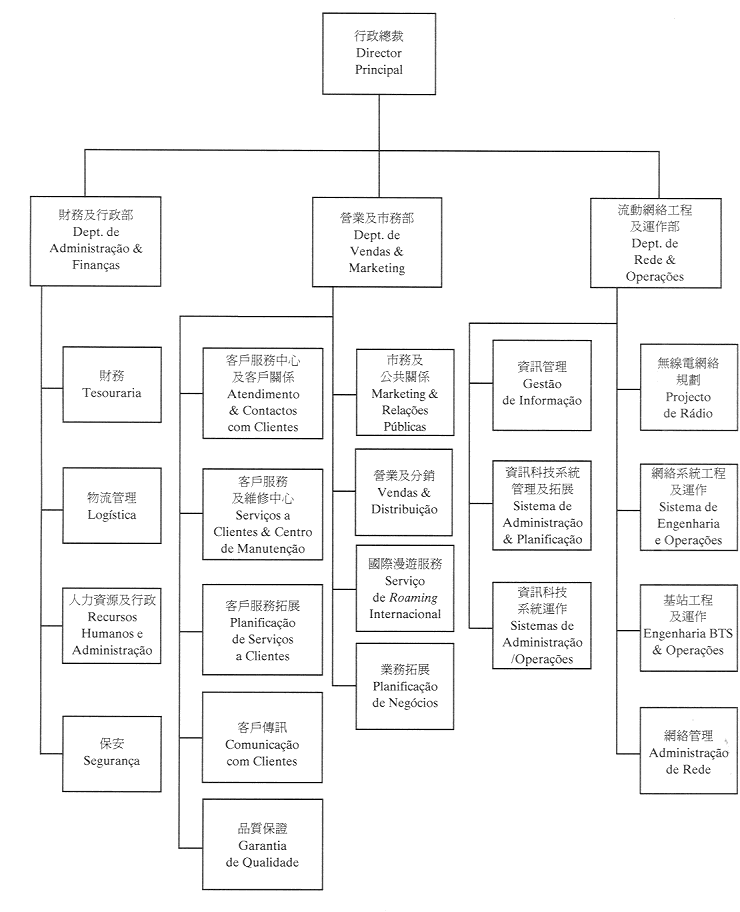 本公司選擇了數碼流動無線電話(GSM)技術,及將於澳門特別行政區裝設900/1800MHZ數碼流動無線電話雙頻網絡。數碼流動無線電話系統是經充分測試,證明可提供清楚嘹亮的優質音頻電話服務、具流動電話數據應用的高容量、并透過固有的加密特點確保安全,以及能提供多種的增值服務。