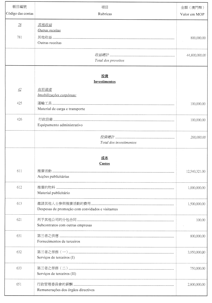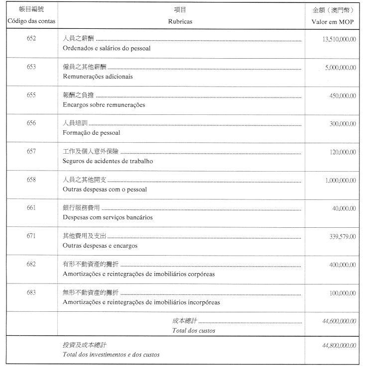 •至二零零一年,投資額約為澳門幣七千萬元。