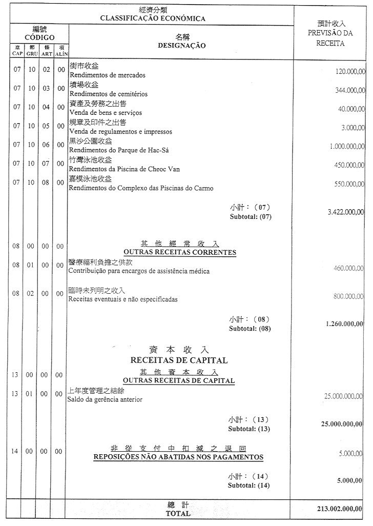 核准臨時海島市政局二零零一年財政年度之本身預算,並於二零零一年一月一日起開始執行,預計收入及開支之金額均為澳門幣213,002,000.00(二億一千三百萬零二千元整),該預算為本批示之組成部分。