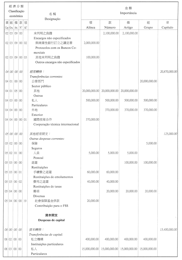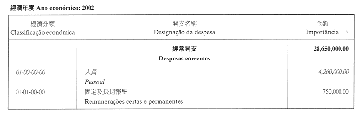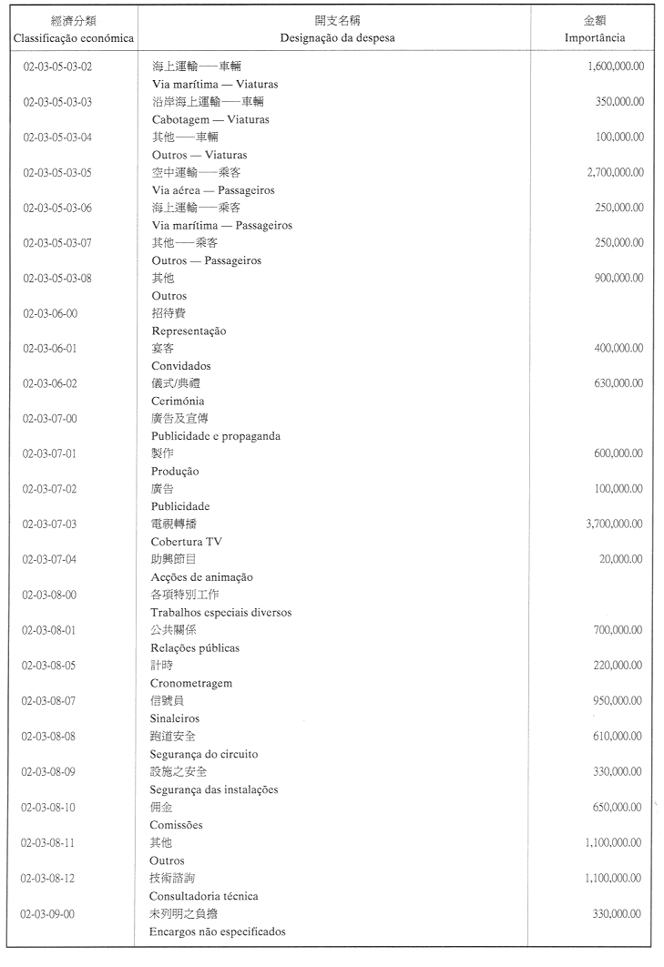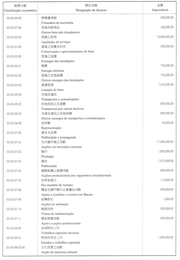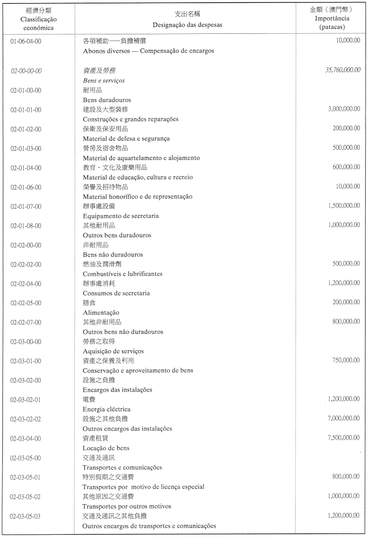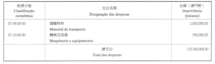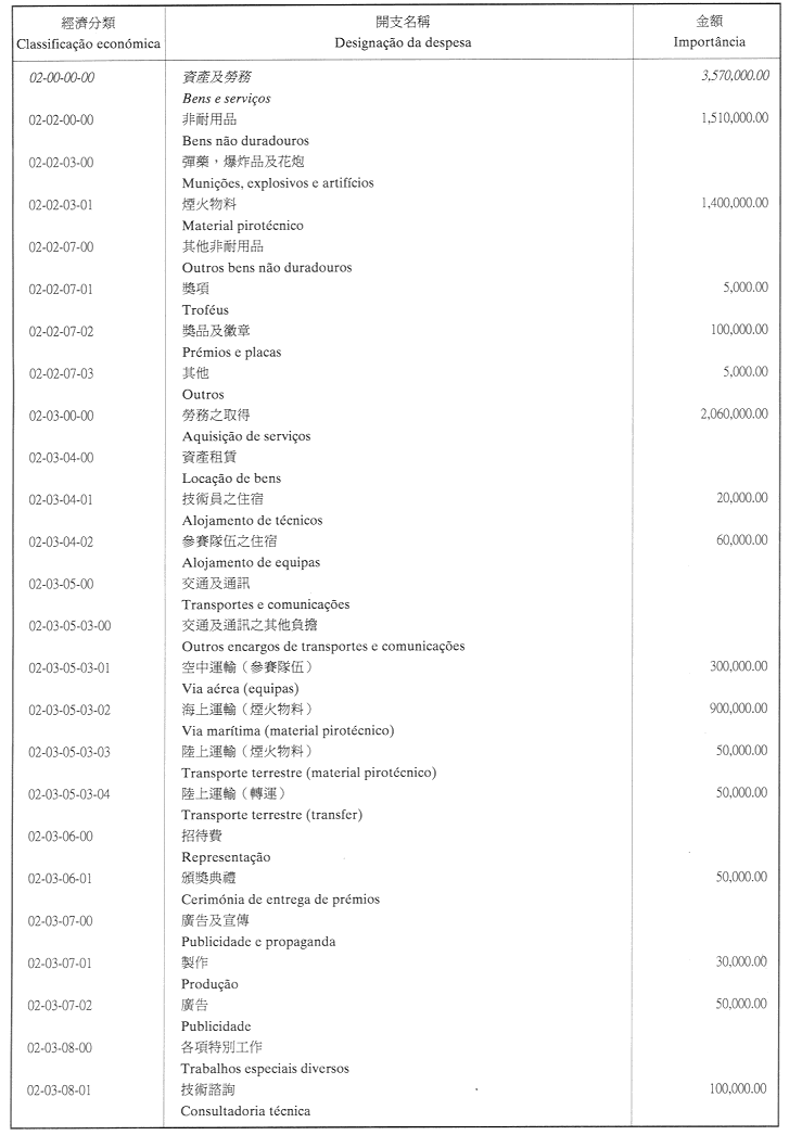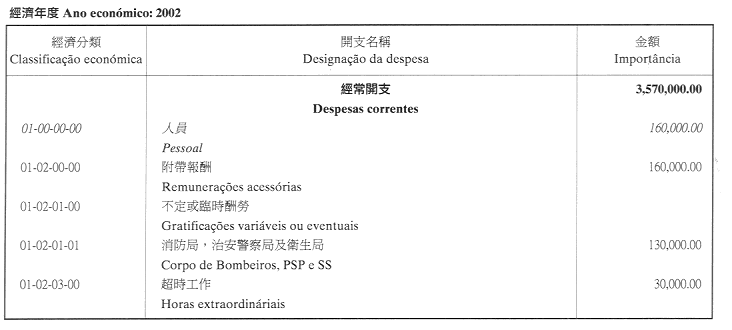 二、二零零二年之負擔由登錄於本年度澳門特別行政區財政預算第四十章「投資計劃」內的次項目8.090.078.37,經濟分類07.06.00.00.06之撥款支付。