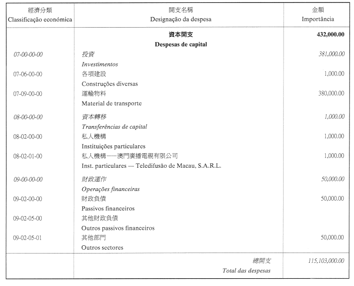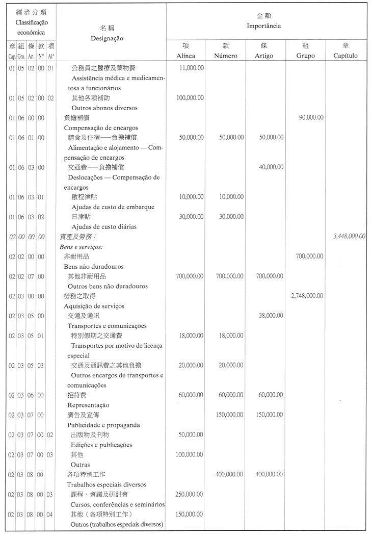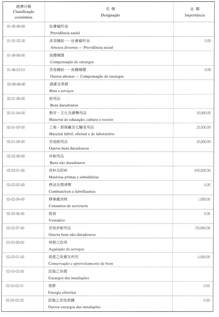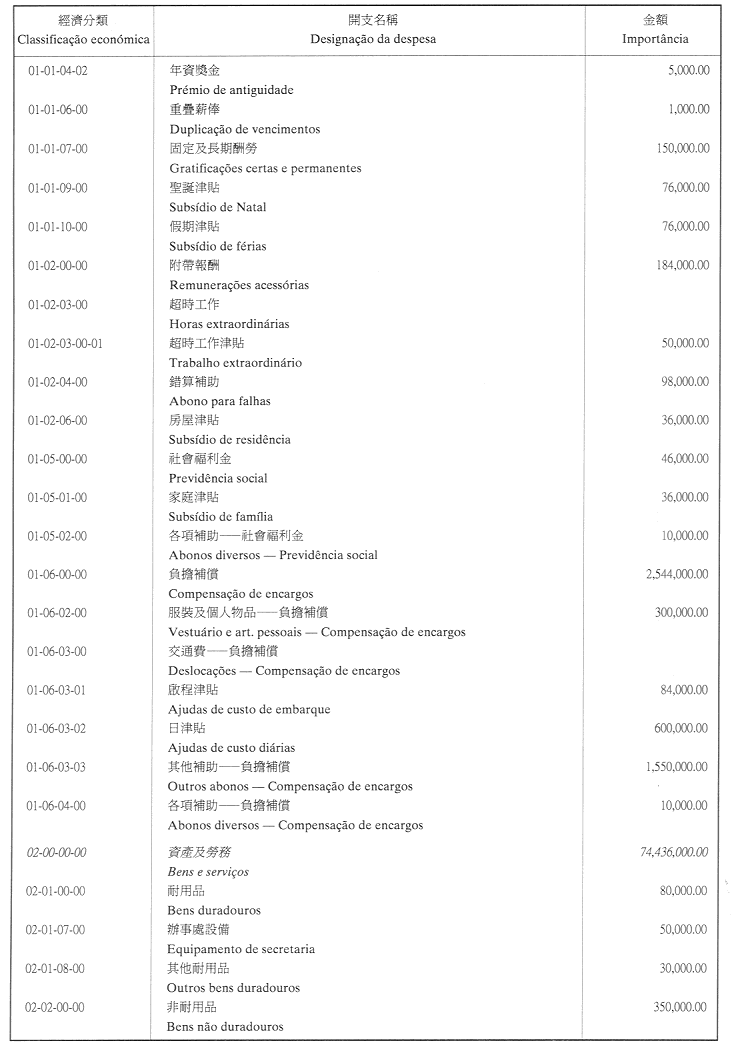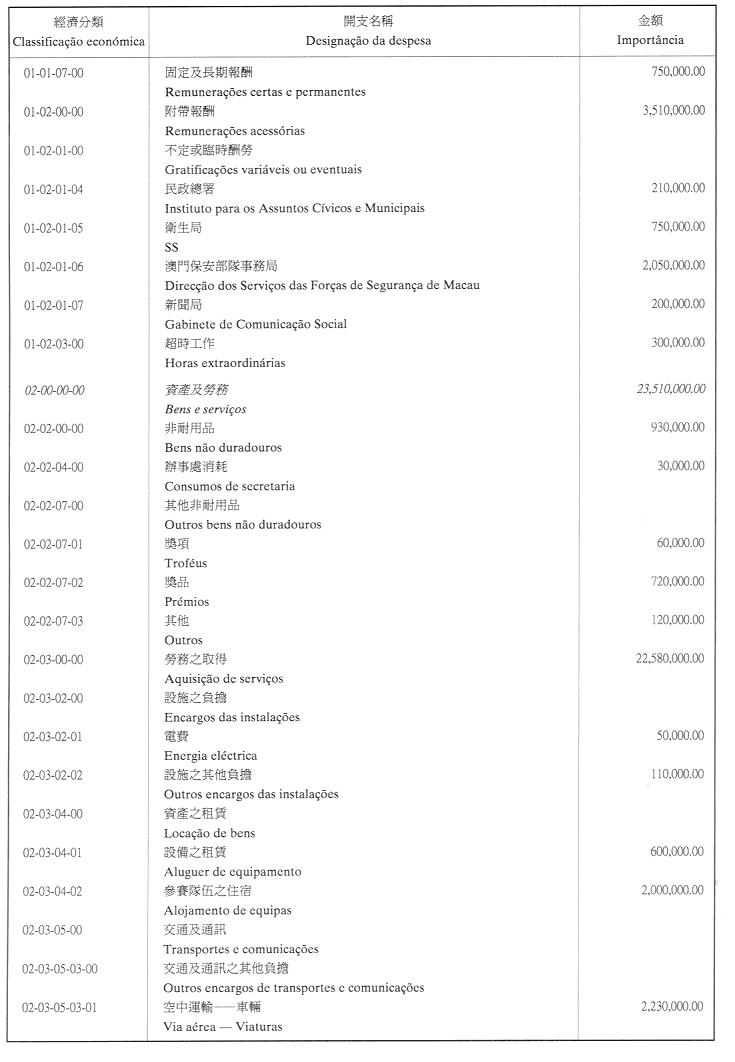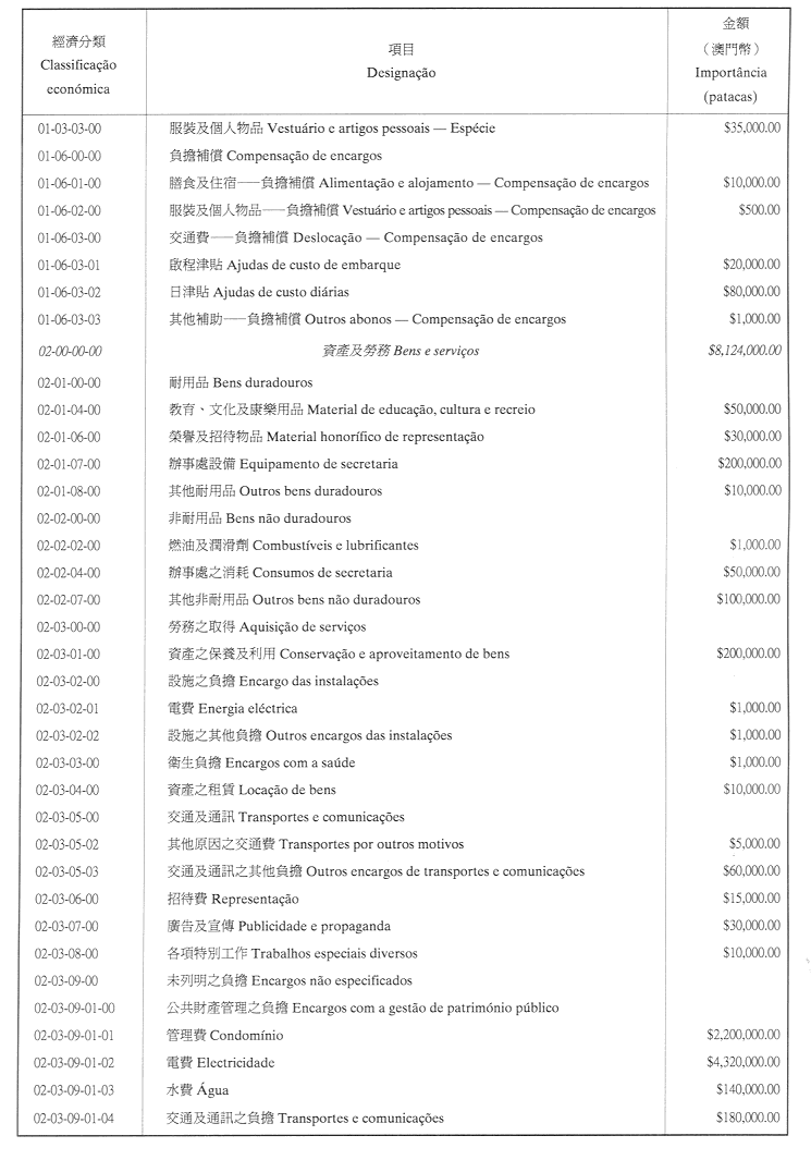 二、二零零二年之負擔由登錄於本年度澳門特別行政區財政預算第四十章「投資計劃」內的次項目8.090.078.37,經濟分類07.06.00.00.06之撥款支付。