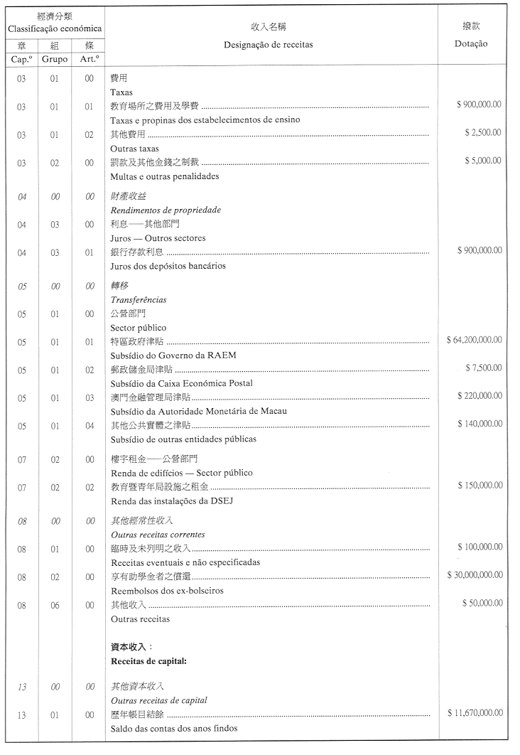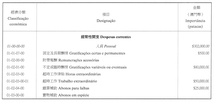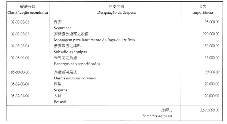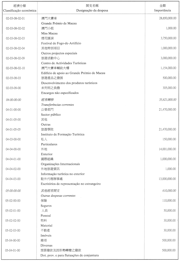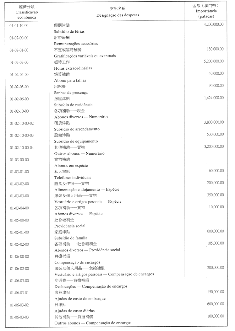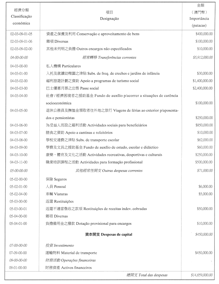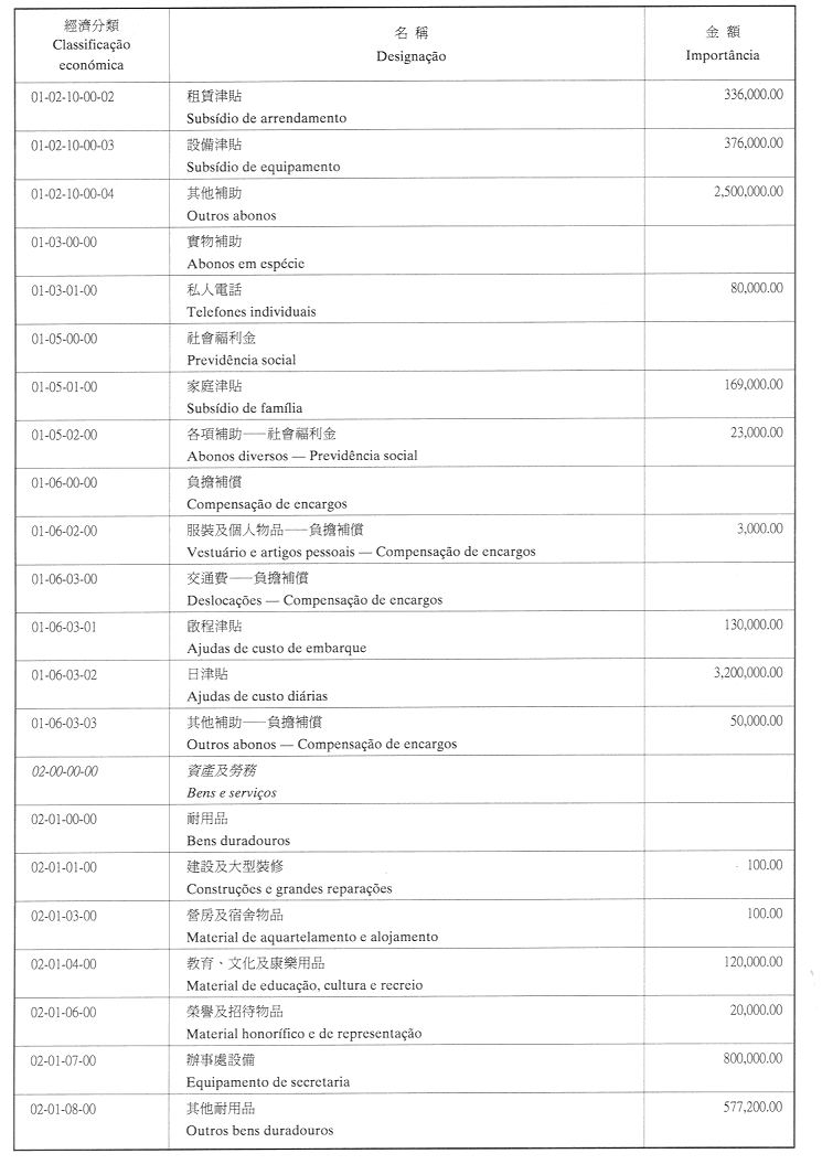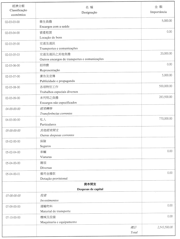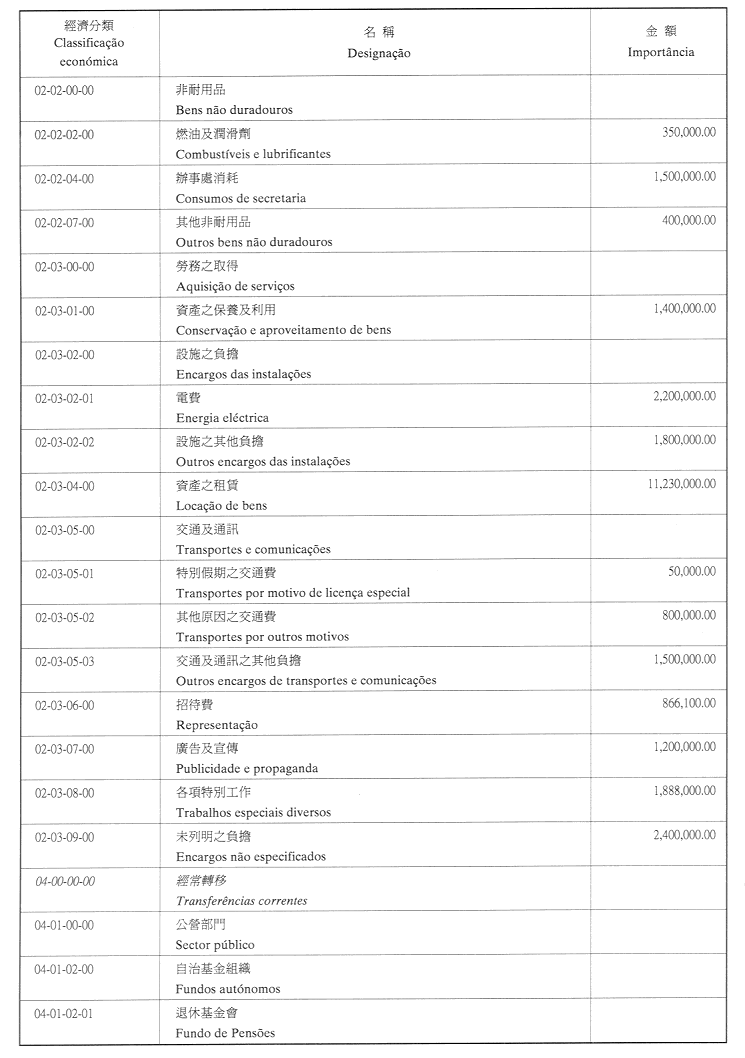三、二零零三年之負擔將由登錄於該年度澳門特別行政區財政預算之相應撥款支付。