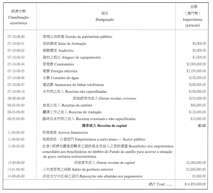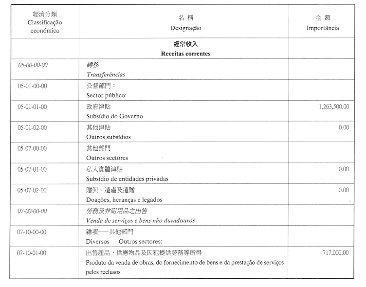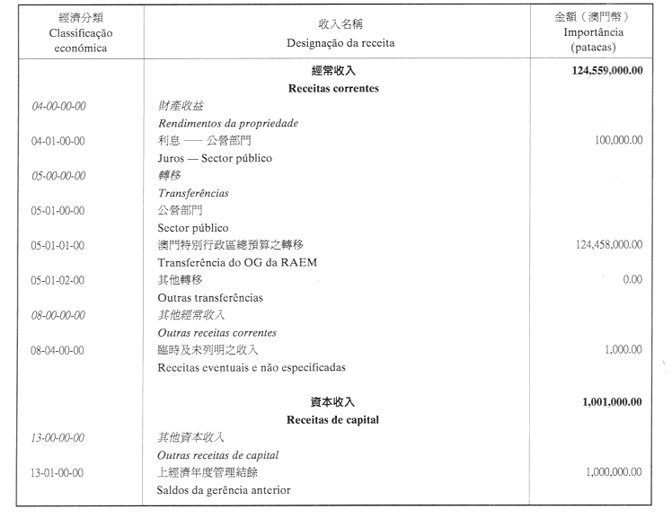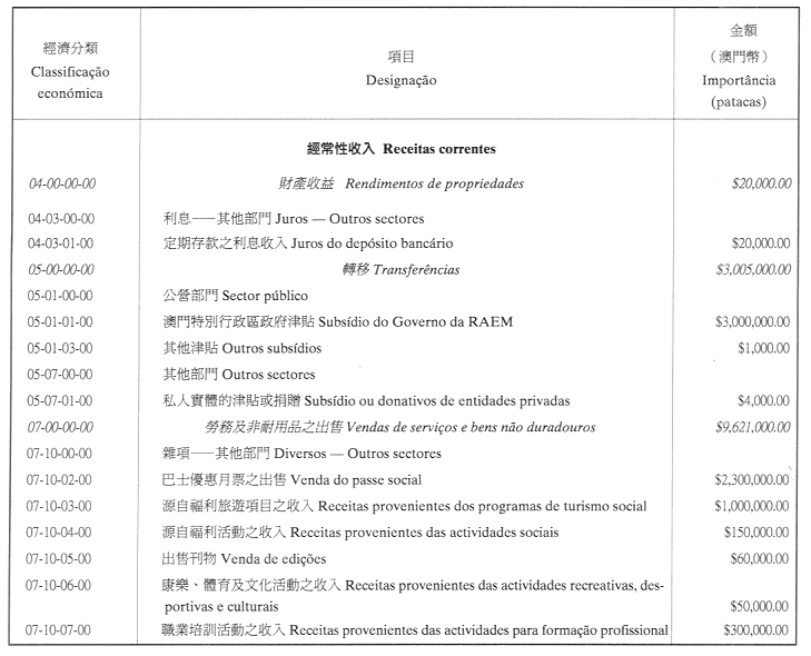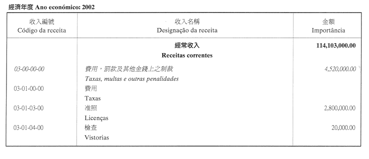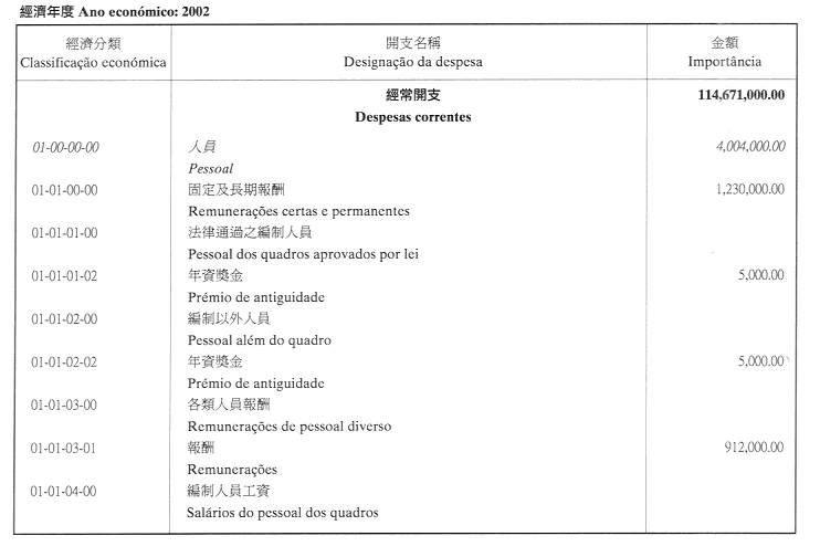 澳門公共行政福利基金2002年財政年度本身預算