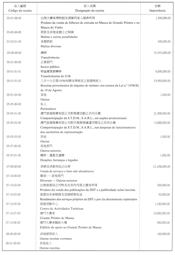 核准旅遊基金二零零二年財政年度之本身預算,並於二零零二年一月一日起開始執行,預計收入及開支之金額均為澳門幣115,103,000.00 (壹億壹仟伍佰壹拾萬零叁仟元整),該預算為本批示之組成部分。