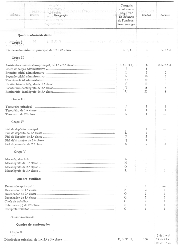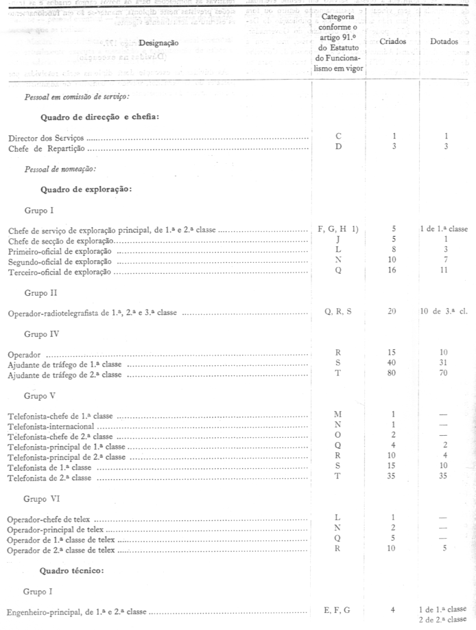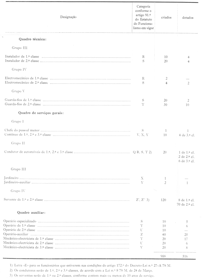 c) Mecânico-electricista de 3.ª classe - o pessoal eventual que actualmente executa a instalação e manutenção da rede telefónica e de telefones, auferindo salários correspondentes à letra "V".