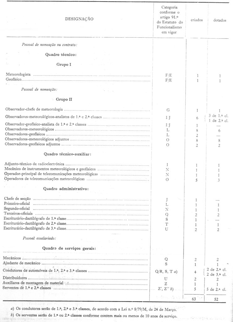 c) Observador-meteorológico-analista de 2.ª classe - os observadores de 1.ª classe, possuidores do estágio para previsor, mas com menos de 3 anos de serviço de previsão;
