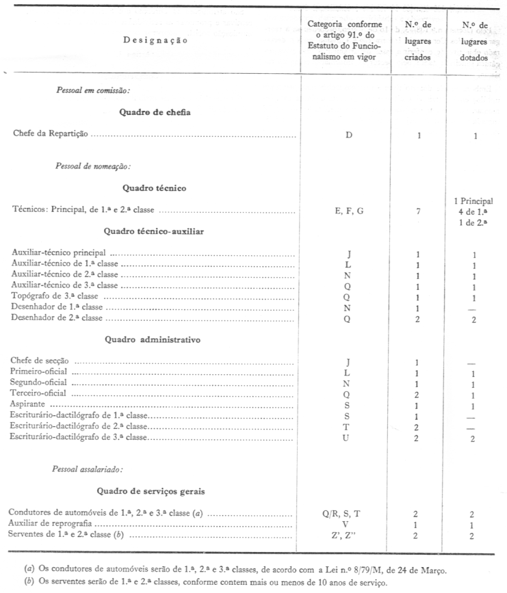 Para desenhador de 2.ª classe - o actual desenhador de 2.ª classe do Gabinete de Apoio e Desenvolvimento, sem prejuízo do disposto no artigo 27.º do Estatuto do Funcionalismo em vigor, sendo-lhe porém levado em conta para efeitos de recondução e nomeação definitiva o tempo de serviço já prestado.