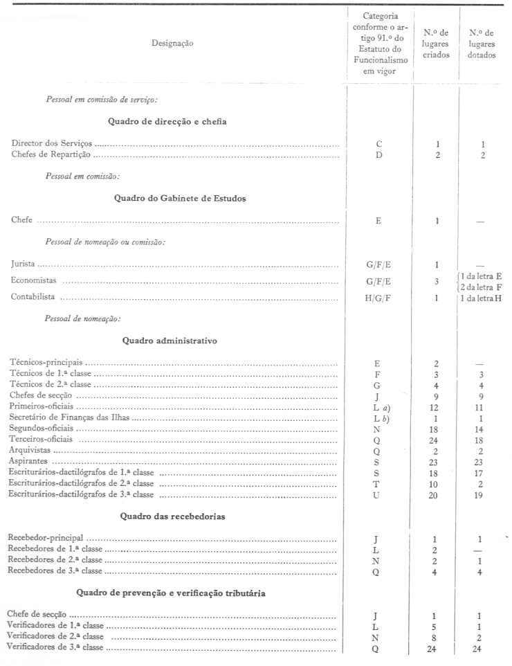 Para o bom desempenho das suas funções ficam o director dos Serviços, os chefes das repartições, os chefes de serviço, o pessoal da secção de prevenção e verificação tributária, os secretários de Finanças, o inspector de Finanças e o inspector-adjunto: