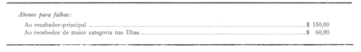 Os recebedores que superintendem nas Recebedorias de Fazenda têm direito a um abono mensal para falhas dos quantitativos fixados no mapa II anexo a este diploma.