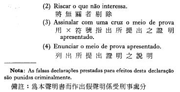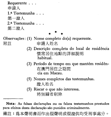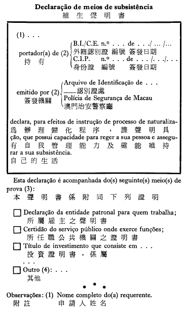 二、為辦理歸化取得國籍之案卷,關係人將向行政暨公職署遞交本法例附件二由政府印刷局專印格式的聲明書乙份,申述其具有自我管理能力及確能維持自己的生活,連同所需之證明文件。