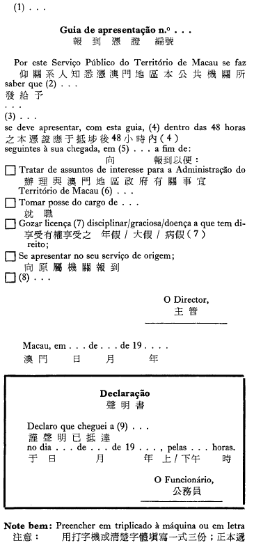 一、由民政廳所簽發之公務員工作證的效期,於一九八三年十二月三十一日告滿,屆時公務員所屬的公共機關必須將之收回,並存於現時持有人之個人檔案內。