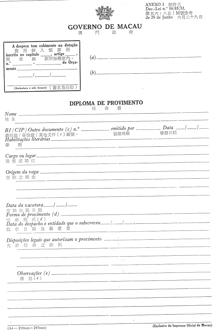 * 已更改 - 請查閱:第10/90/M號法令,第7/91/M號法律,第42/92/M號法令