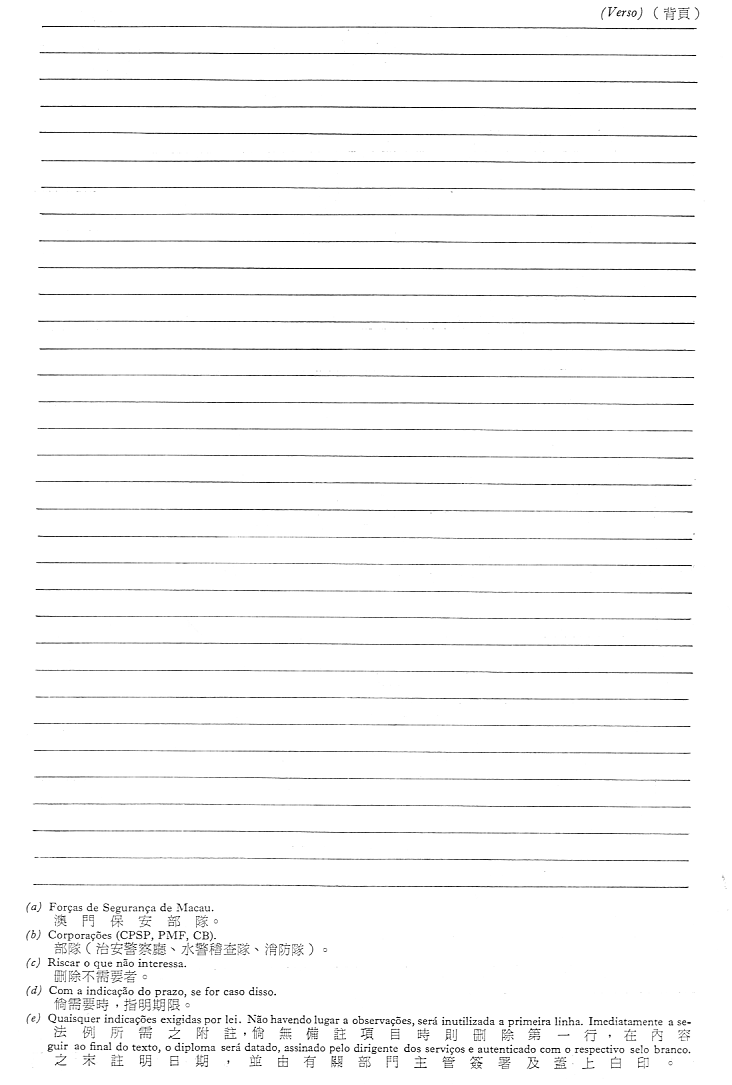 按照上述所指之特徵,本法令定出澳門保安部隊之任命及職程制度,而由于設立對範圍的一套原則,使能制定關於每一部隊所擁有的特徵之其他條例。